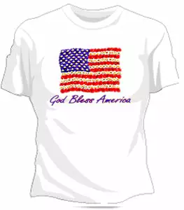 God Bless America Girls T-Shirt. Exclusively from Bewild.com, these new tee’s feature hard-core sayings that say it all. From “Lick Here For Full View” to “Skanky white-trailer trash”. How about a t-shirt that says “Dip me in Chocolate and throw me to the lesbians?” Our short sleeve “God Bless America” t-shirts are made from a 100% fully machine washable preshrunk cotton for a cool and comfortable fit every time.
