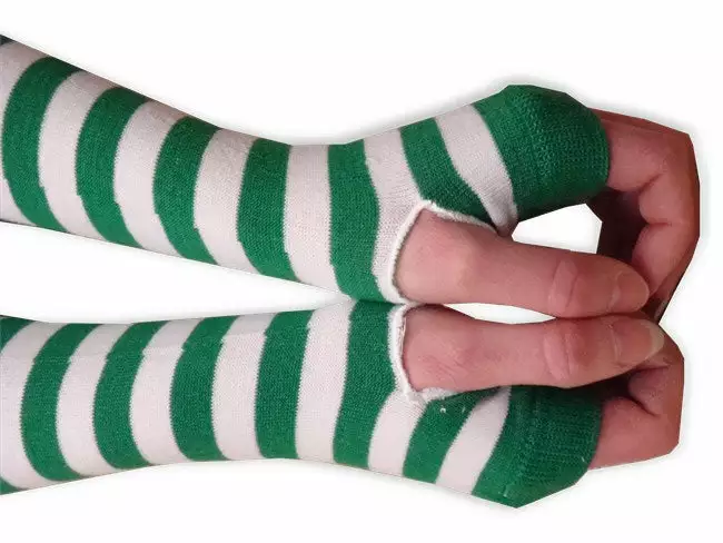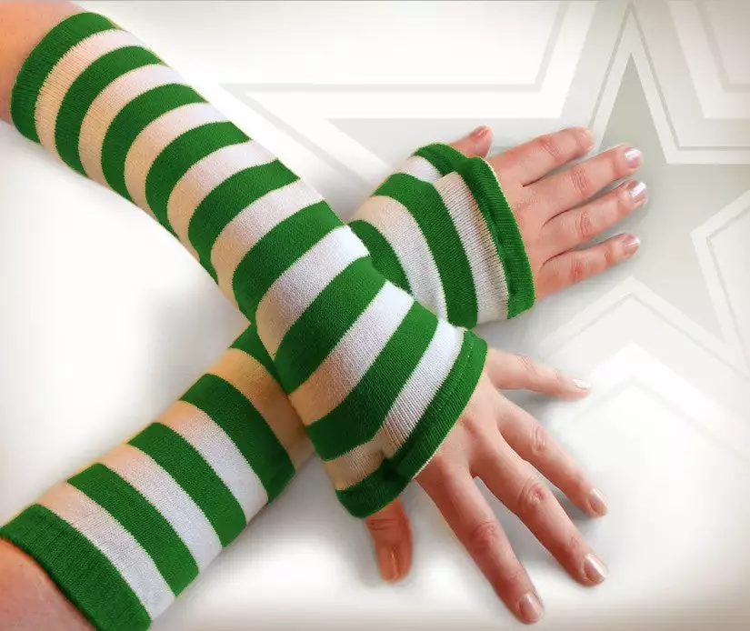 Our Green Striped arm warmers are one size fits all, 10″ long and will strech to fit anybodies arm. Keep warm and look great! Accent your St.Patrick’s day outfit with a one of a kind style nobody else will have. Each set contains a set of 2 arm warmers with thumb holes so it also keeps the top of your hands warm. Irish Kelly Green stripes with white defines the colors of St.Patrick’s day. the perfect addition to your St.Patrick’s day “greens”!