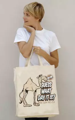 Canvas tote Guess What Day It Is? Camel Hump Day bags are stylish, practical as well as eco-friendly! Made of of 100% recycled canvas you can own a trendy bag and play a role in helping the environment! This Tote bag features the Guess What Day It Is? Camel Hump Day camel design printed on a premium quality 15″ x 15″ Canvas tote bag. Durable and practical this bag will last a long time and you will use it for everything. Carry your groceries, school books, beach gear and more.