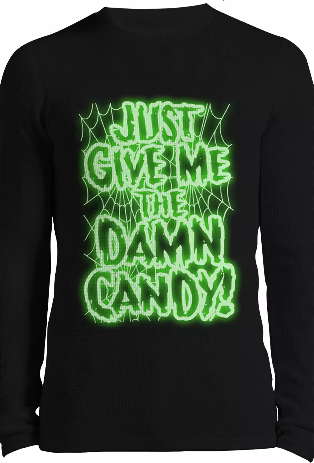 Bewild Halloween Prints Just Give Me The Damn Candy Glow In The Dark Thermal Long Sleeve Shirt