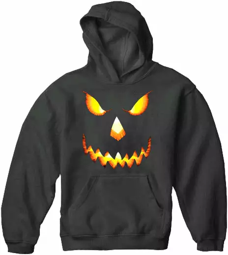 Mean Pumpkin Head Halloween hooded sweatshirt, You will be able to picture yourself walking anywhere in this Black halloween pumpkin Hooded 50/50 Sweatshirt. Designed for warmth and durability the 7.5 ounce, 50/50 blend fleece fabric with double-ply hood provides protection from a blinding snow storm at the North Pole or from blowing sand in the Mojave Desert. This hooded sweat is versitility plus. The convenient pouch pocket keeps hands warm or holds a water bottle. The matching drawstring and metal grommets on the hood make sure it stays where it belongs. The set-in sleeves, ribbed cuffs and banded bottom all keep this shirt together in a way that makes durability its middle name.