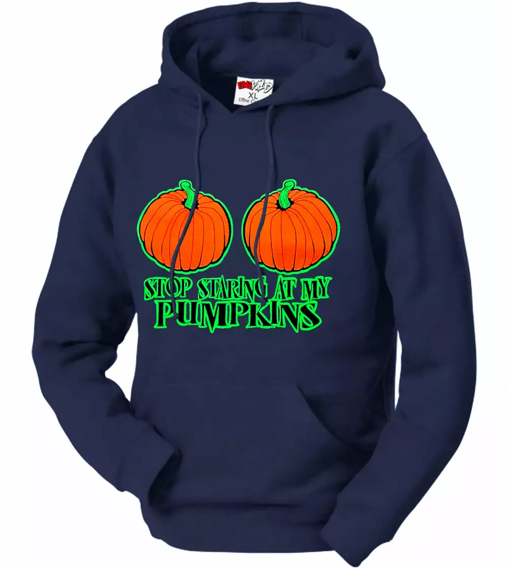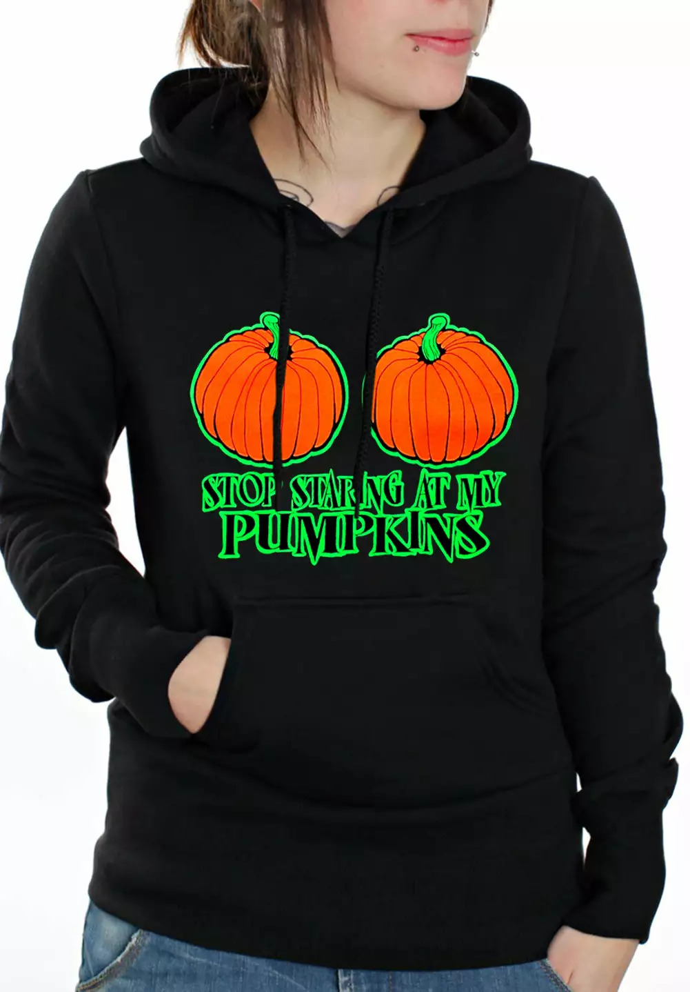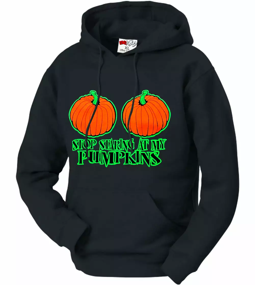 Bewild Halloween Shirt – Stop Staring At My Pumpkins Adult Hoodie
