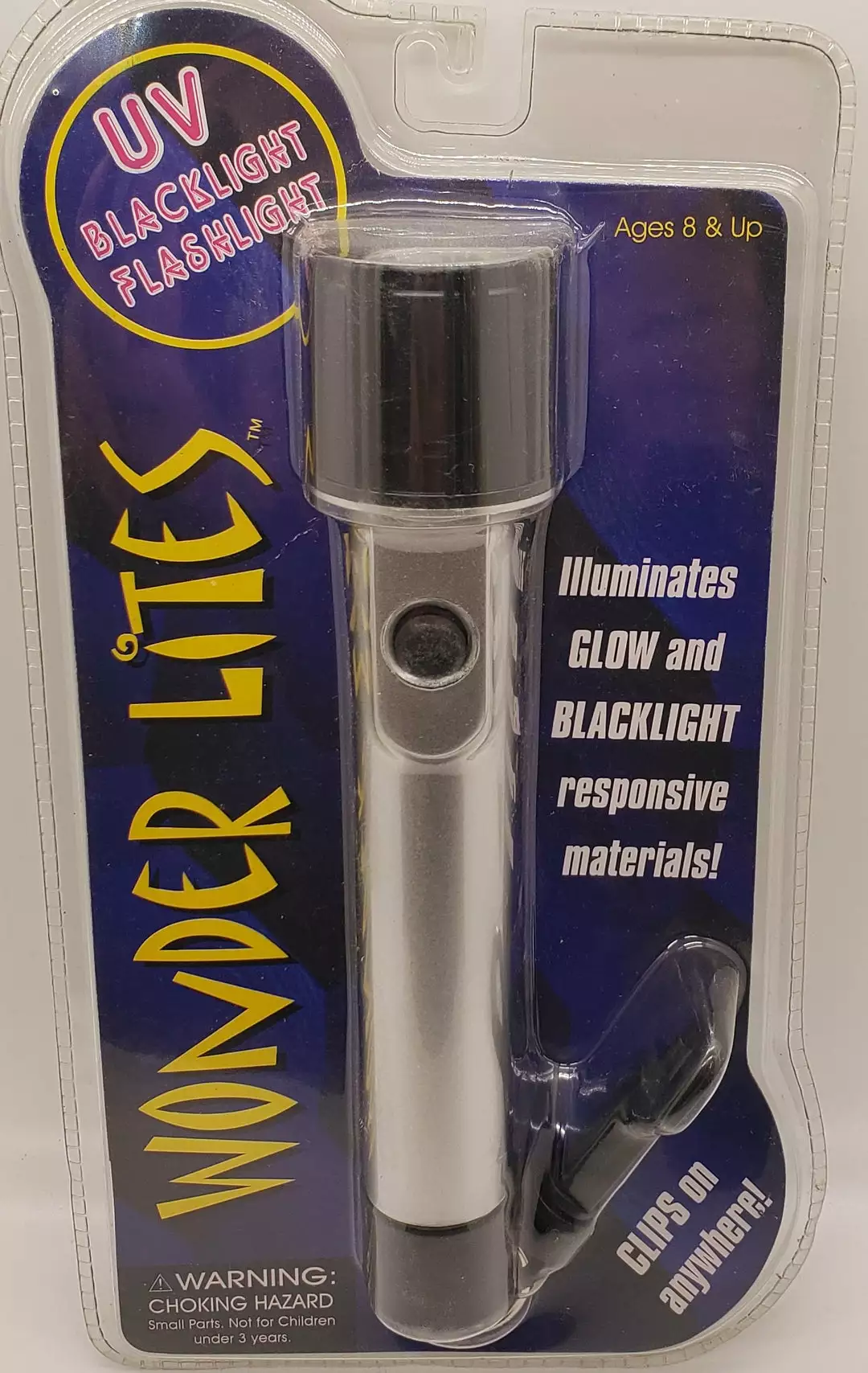 This is the world’s most compact cordless Fluorescent Blacklight. At only 7½” this handheld unit is a powerhouse, throwing True florescent UV light. The Handheld Battery Operated Fluorescent Blacklight feels comfortable in your hand. True UV light reacts with neon colors, glow in the dark material and other phosphorescent materials. This small black light takes 3 AA batteries and is completely cordless.