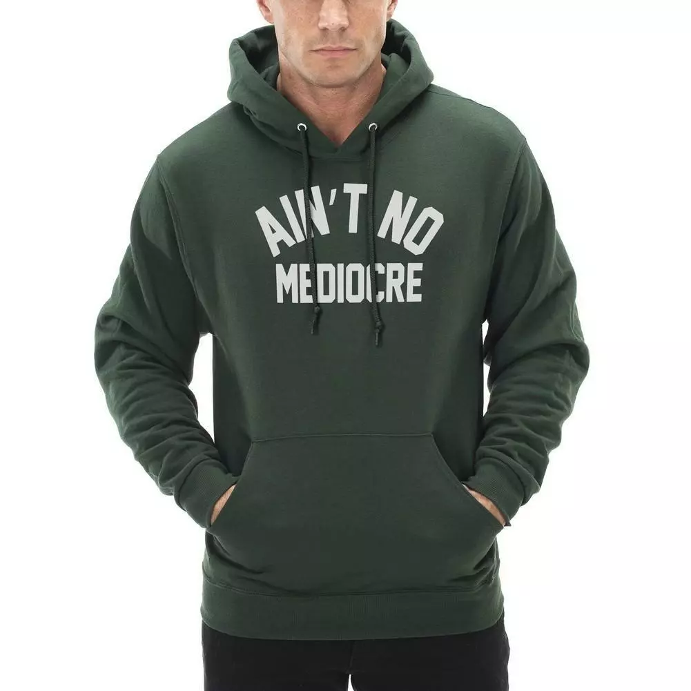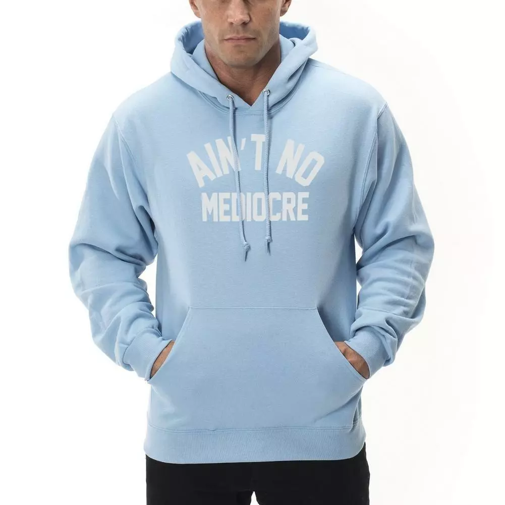 “No Mediocre” is a sporty hooded pullover that will always look smooth, thanks to our pill-resistant fleece.