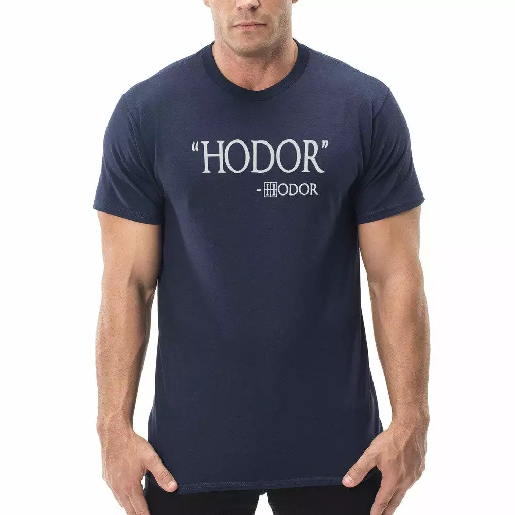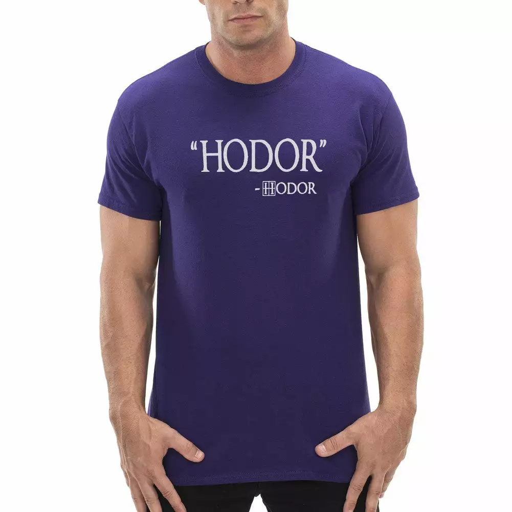 Hodor Hodor Quote Men’s T-Shirt features a classic 100% Cotton style is a great choice for anyone’s T-shirt drawer. These Hodor Hodor Quote Men’s T-Shirts have been printed with image on the front. These t shirts are made from heavyweight 6oz. 100% Preshrunk cotton. Looks Great, Priced right – and gets better with each washing.