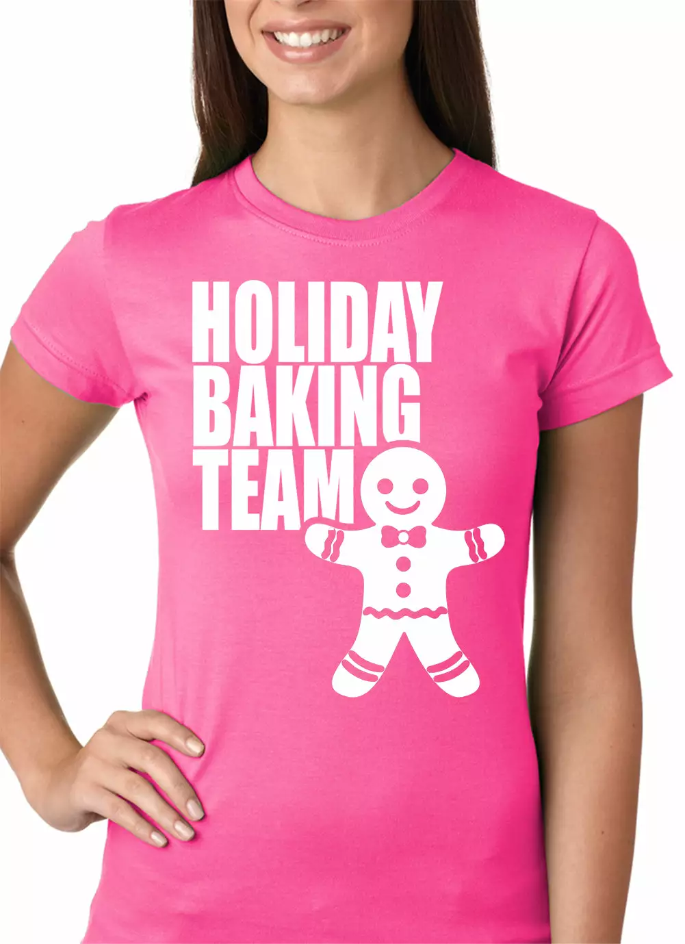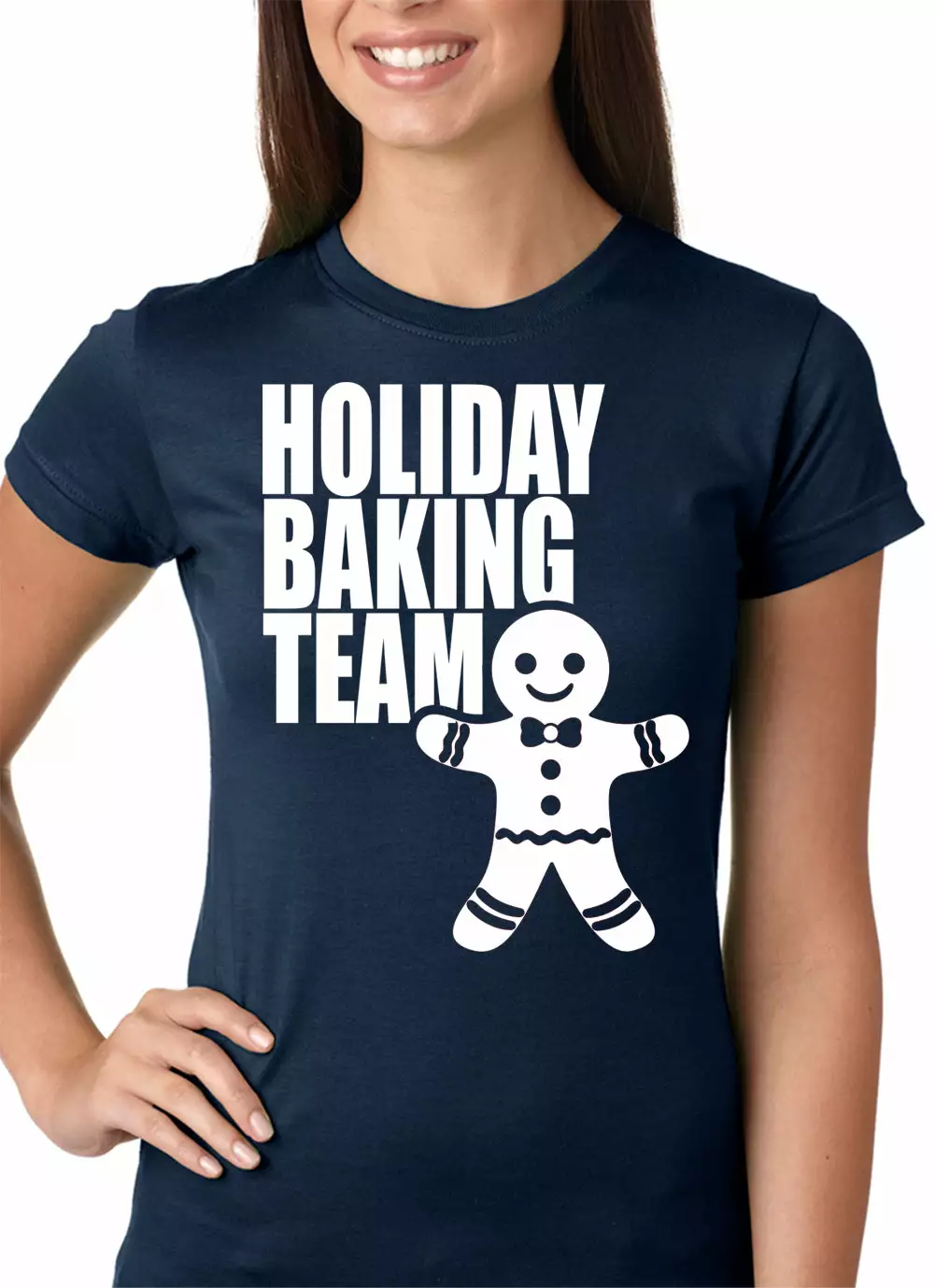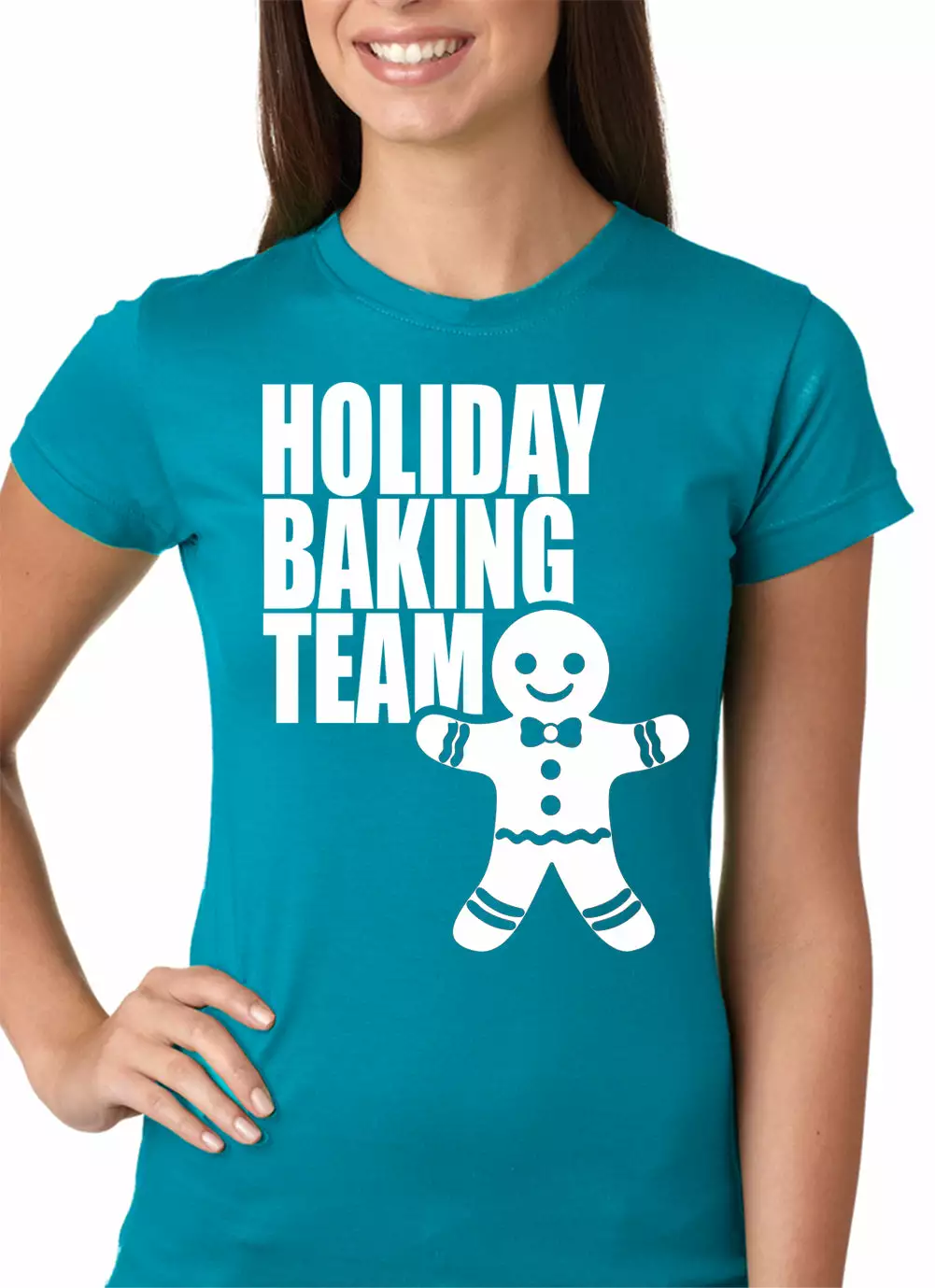 We all have our traditions around the holidays. Many of us enjoy baking cookies with our family, to help spread the holiday cheer. Get creative and fun! Be part of the “Holiday Baking Team” this year, and start a new tradition. These fun shirts are a great way to get your whole baking team into the spirit of the season.Â