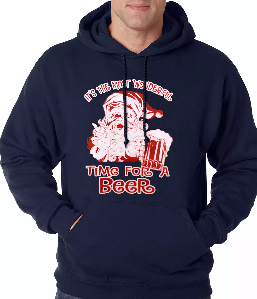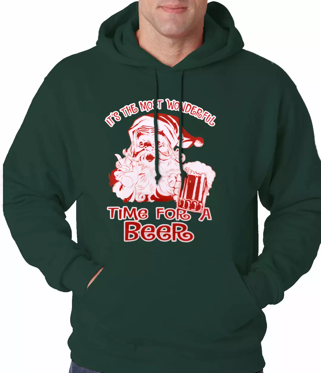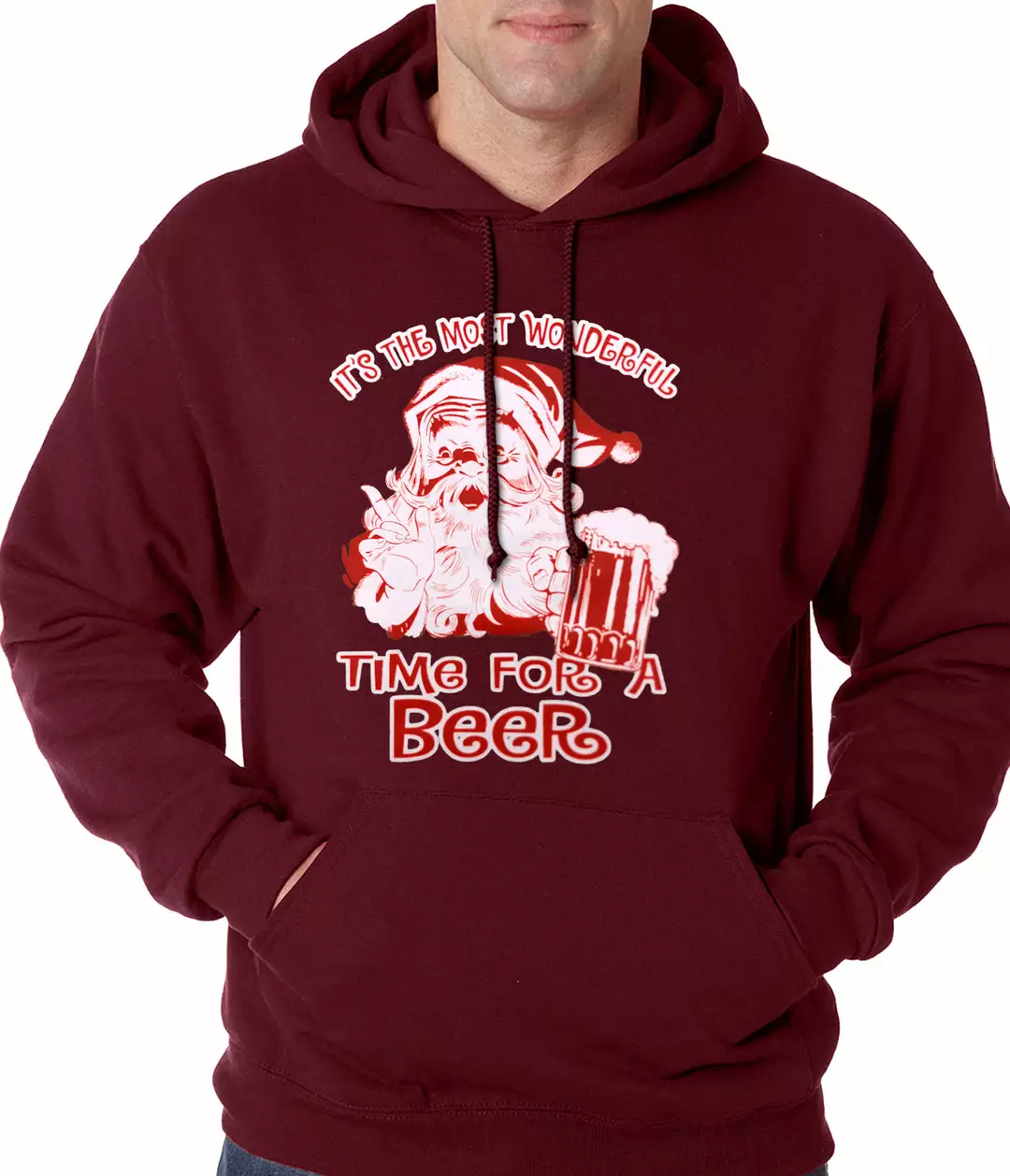 Bewild Holiday Prints It’s The Most Wonderful Time For A Beer Funny Christmas Adult Hoodie