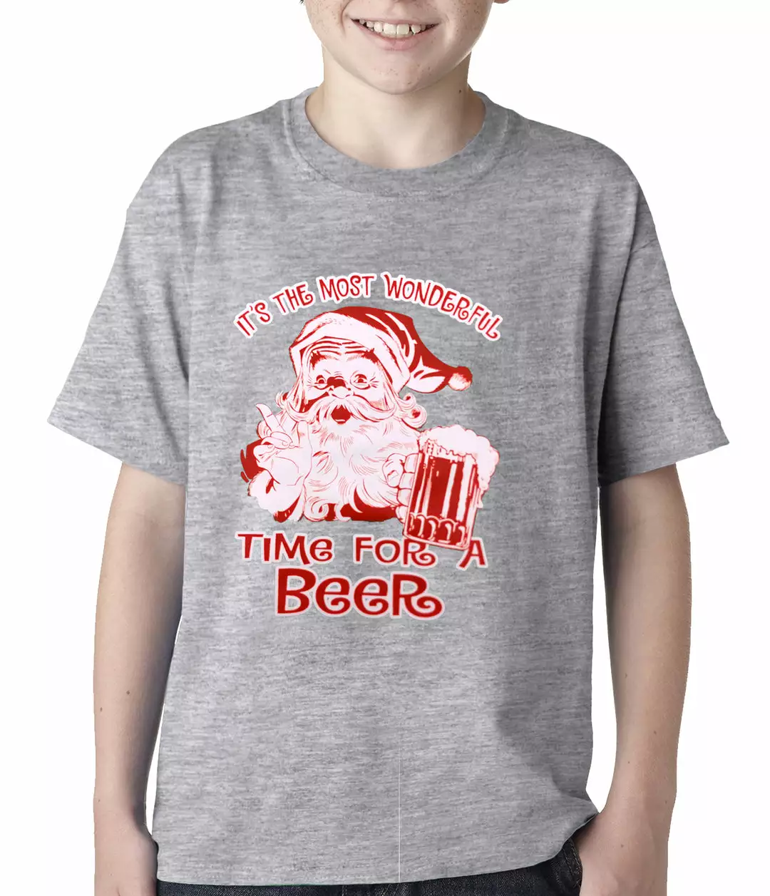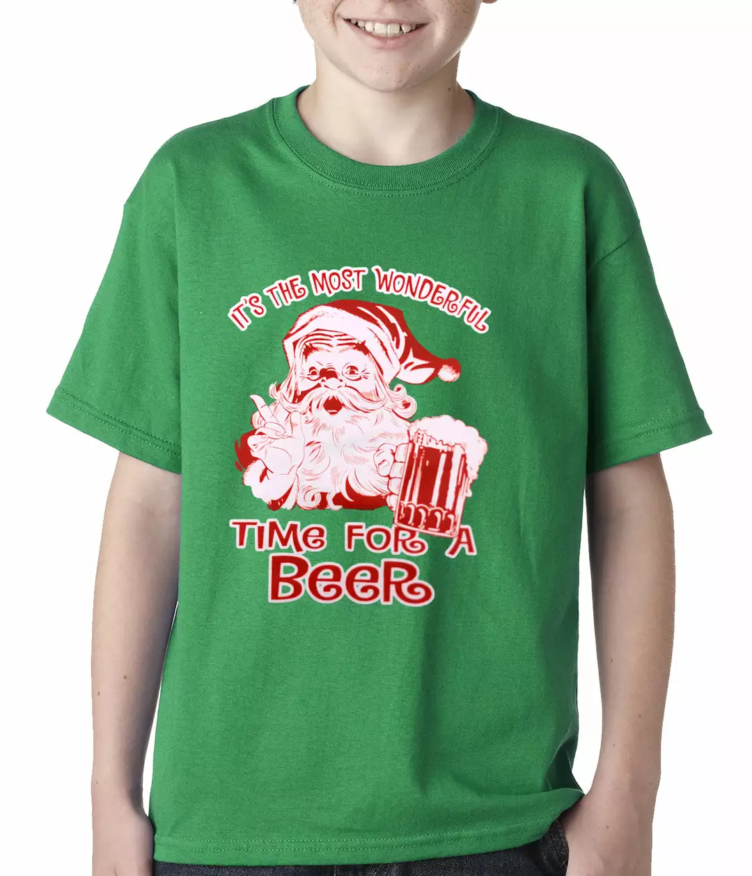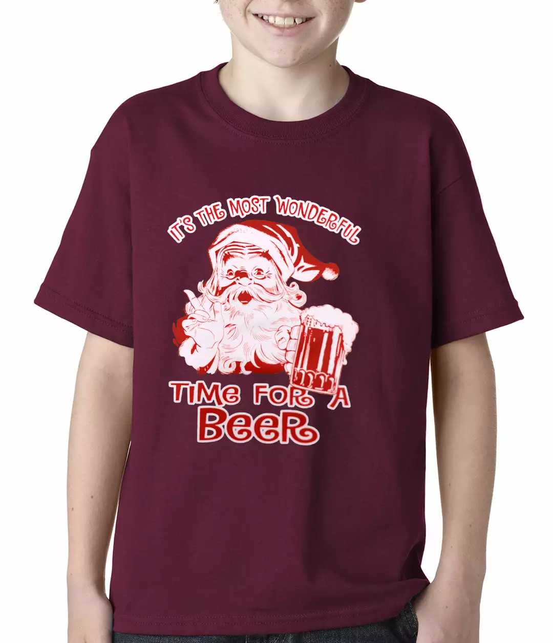 Bewild Holiday Prints It’s The Most Wonderful Time For A Beer Funny Christmas Kids T-shirt