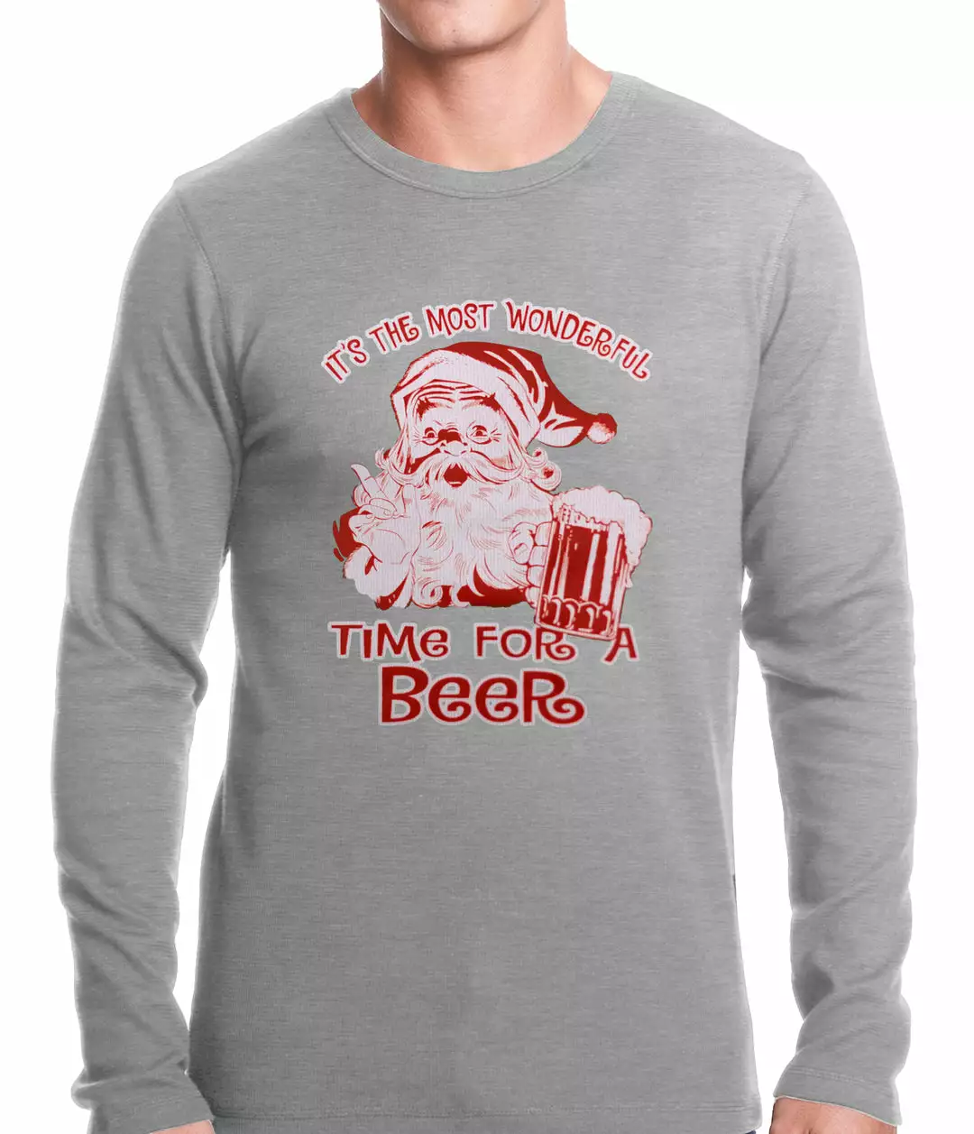 Bewild Holiday Prints It’s The Most Wonderful Time For A Beer Funny Christmas Thermal Shirt
