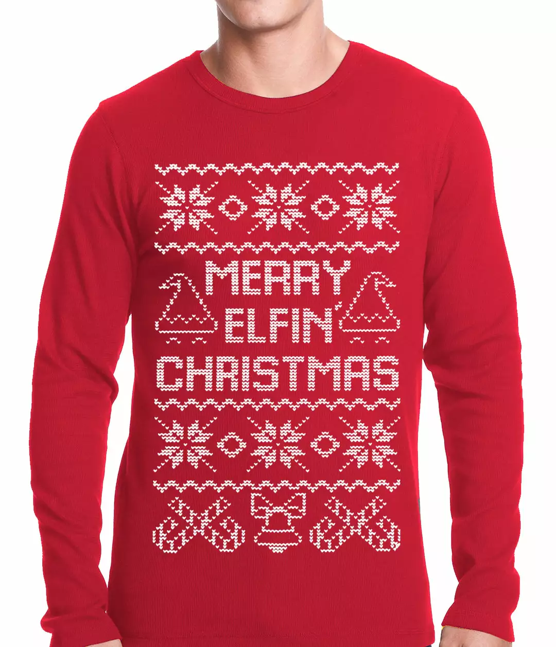 Bewild Holiday Prints Ugly Christmas Thermal – Merry Elfin Christmas Funny Ugly Christmas Thermal Shirt