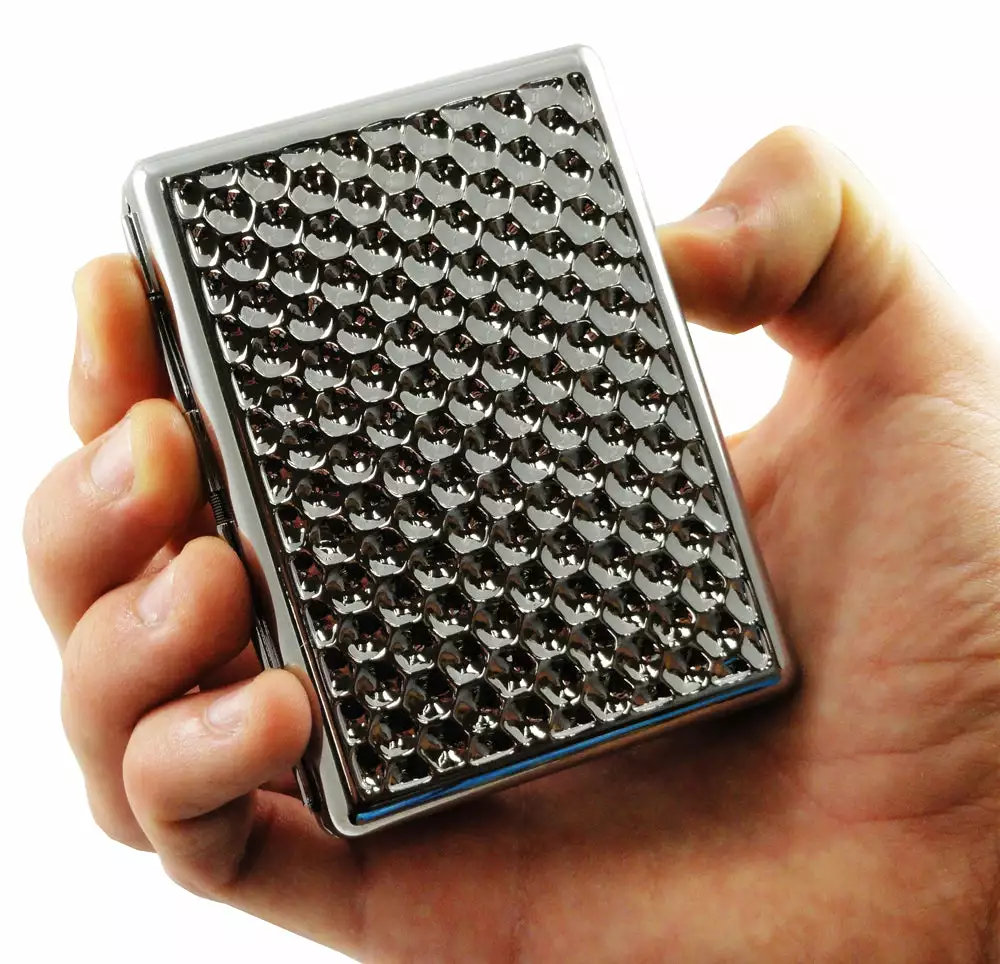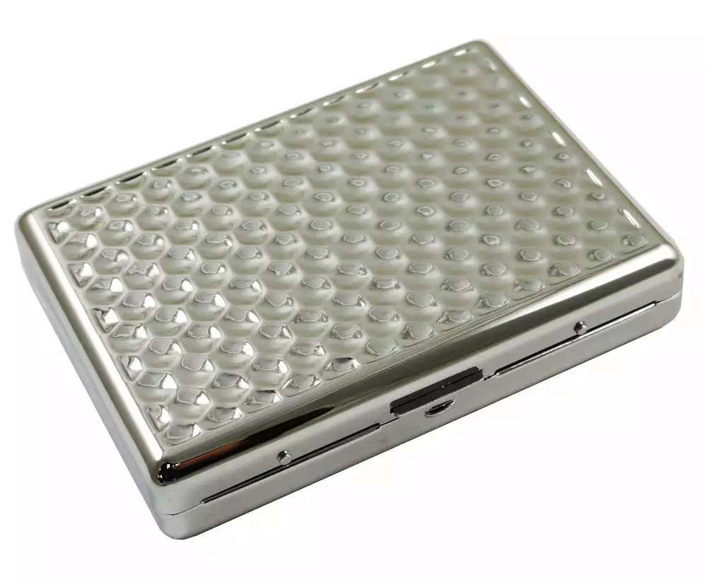 This Honeycomb Luxury Cigarette Case is a sure way to keep your cigarettes safe and to add a little bit of class into your life! This beautiful cigarette case features a wonderful Honeycomb design on the front and back side. This classic stainless steel design is built to last and is very sturdy! This case can hold about a full pack of cigarettes inside so you dont have to worry about running out of smokes half way through the day! This Honeycomb Luxury Cigarette Case measures 2 3/4″ x 3 3/4″.