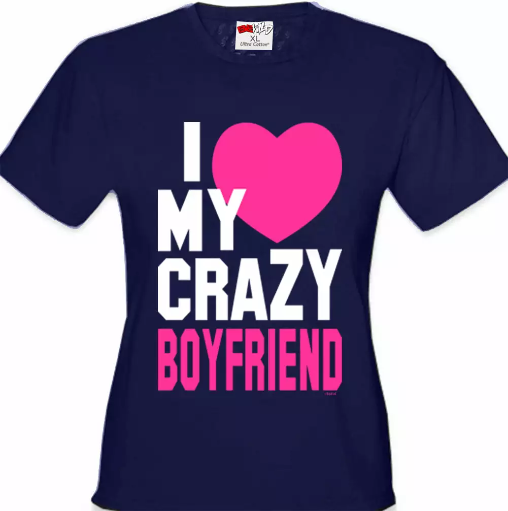 I Heart My Crazy Boyfriend Junior Fitted shirts are a S-32″ at bust and 29″ at waist, M-34″ at bust and 30″ at waist , L36″ at bust and 34″ at waist, XL-38″ at bust and 35″ at waist.