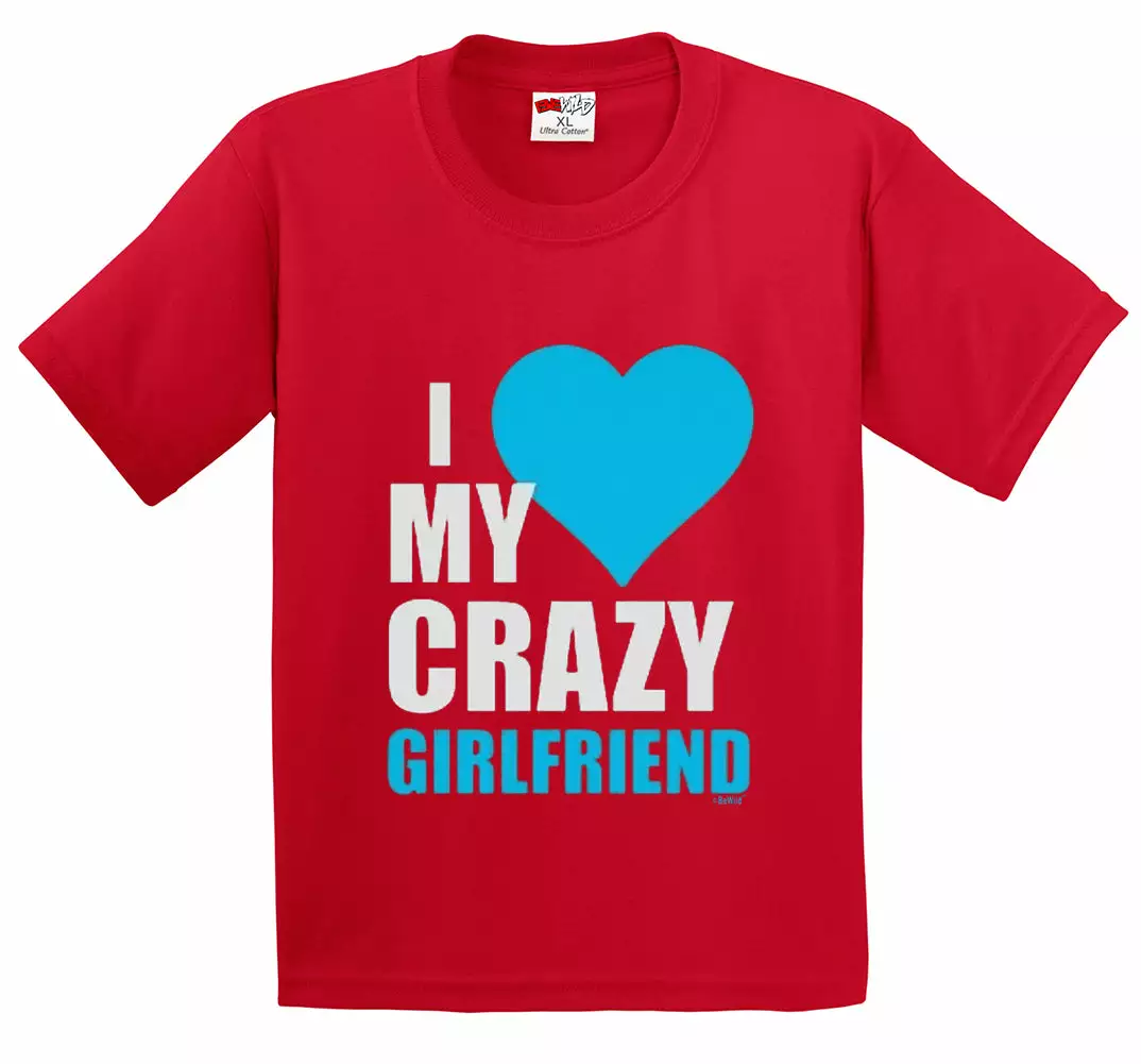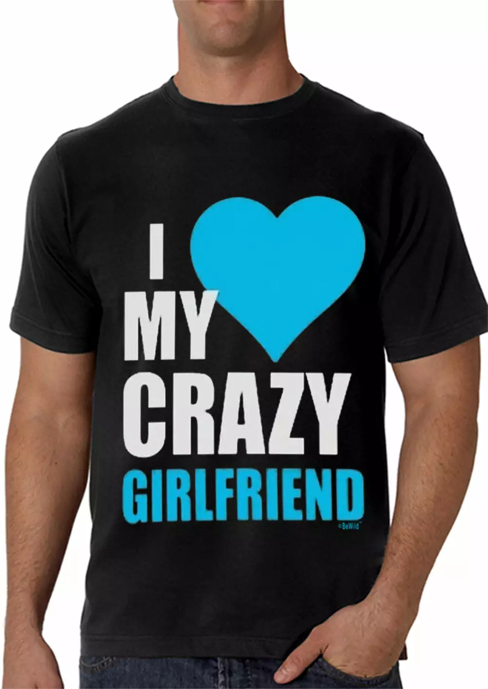 I Heart My Crazy Girlfriend Men’s T-Shirt features a classic 100% Cotton style is a great choice for anyone’s T-shirt drawer. These I Heart My Crazy Girlfriend Men’s T-Shirts have been printed with image on the front. These t shirts are made from heavyweight 6oz. 100% Preshrunk cotton. Looks Great, Priced right – and gets better with each washing.