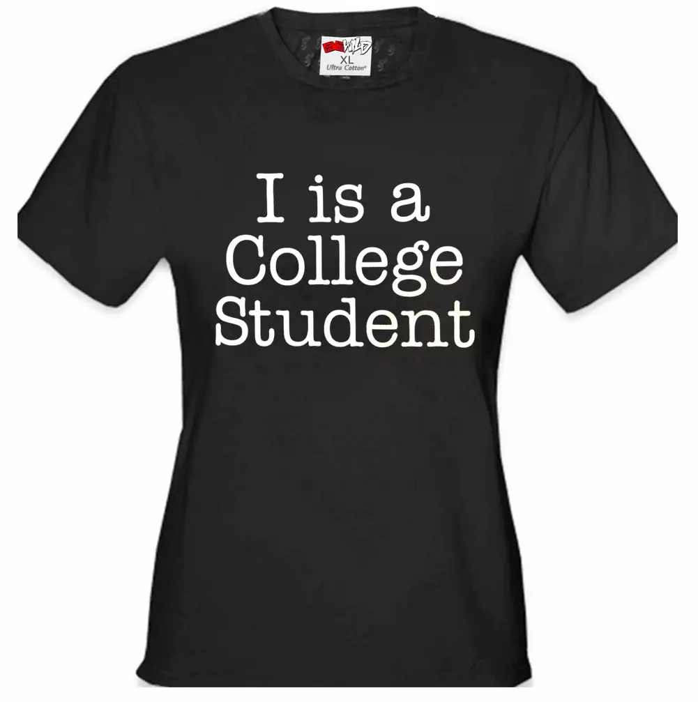 I Is A College Student Girls T-Shirt. Exclusively from Bewild.com, these new tee’s feature hard-core sayings that say it all. From “Trust Me I’m A Doctor” to “Thats Mr. Asshole To You”. How about a t-shirt that says “I Scored High On My Drug Test” Our short sleeve t-shirts are made from a 100% fully machine washable cotton/poly blend for a cool and comfortable fit every time. On the front of this shirt it says “I Is A College Student!”.