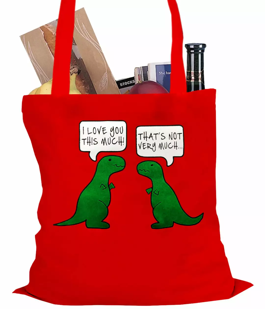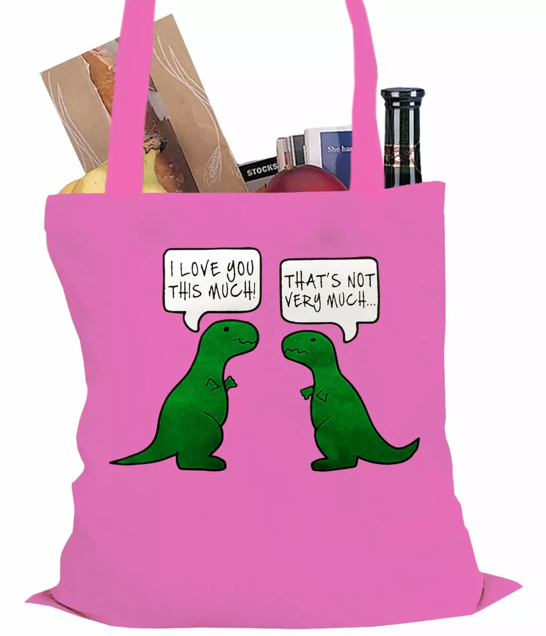 Bewild I Love You This Much Funny T-Rex Tote Bag Positive Reinforcement