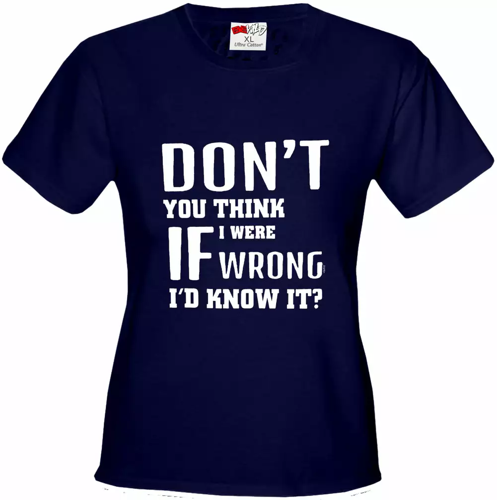 If I Were Wrong I’d Know quote from The Big Bang Theory Junior Fitted shirts are a S-32″ at bust and 29″ at waist, M-34″ at bust and 30″ at waist , L36″ at bust and 34″ at waist, XL-38″ at bust and 35″ at waist.
