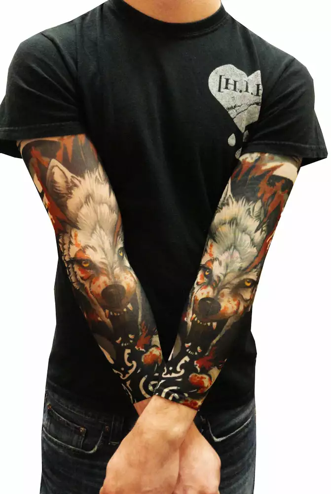 Tattoo Sleeves – Vicious Wolf Fake Tattoo Sleeves (Pair).