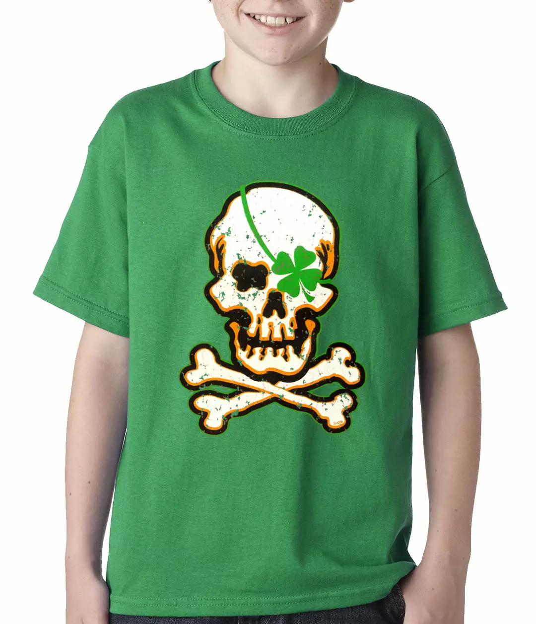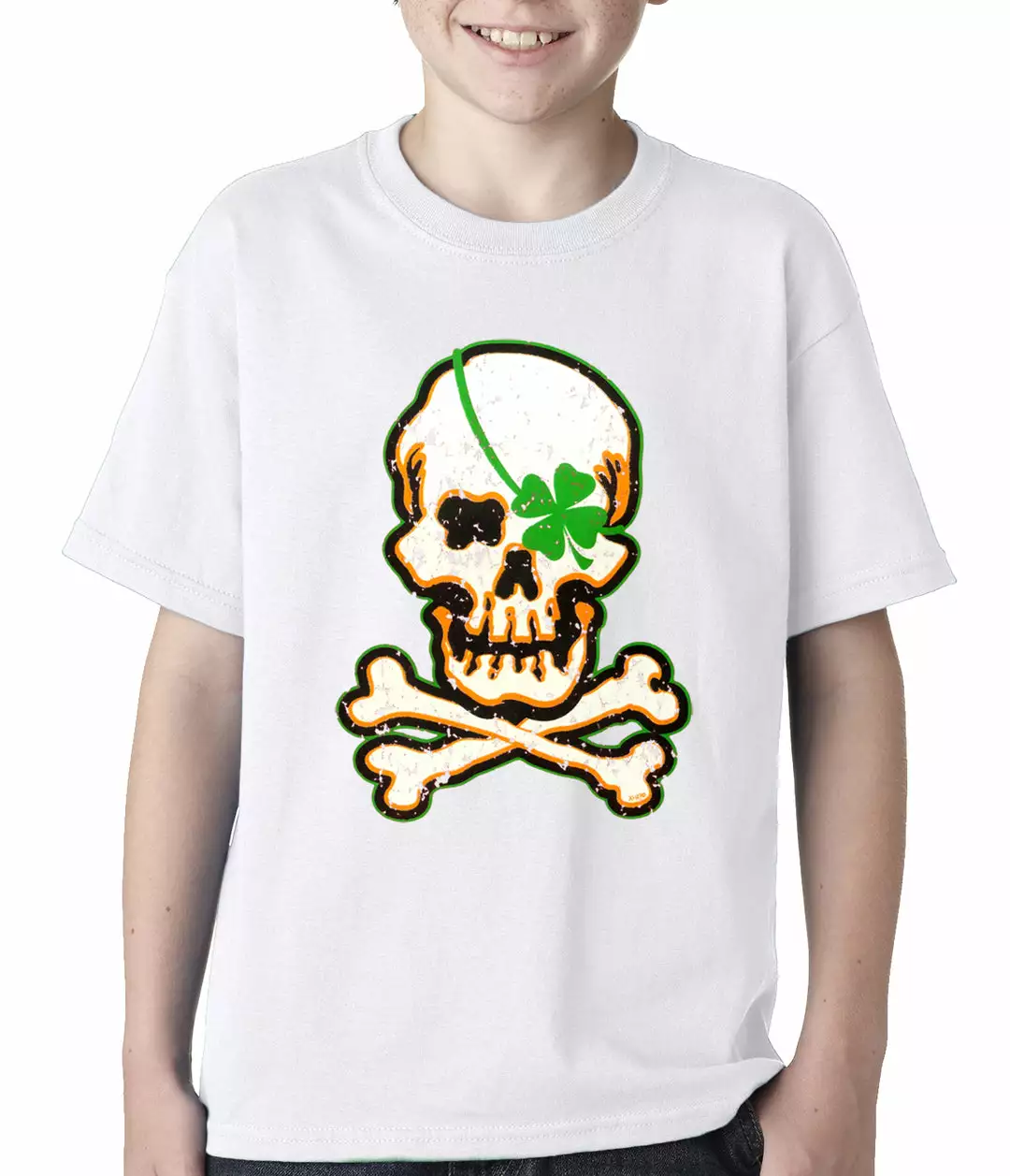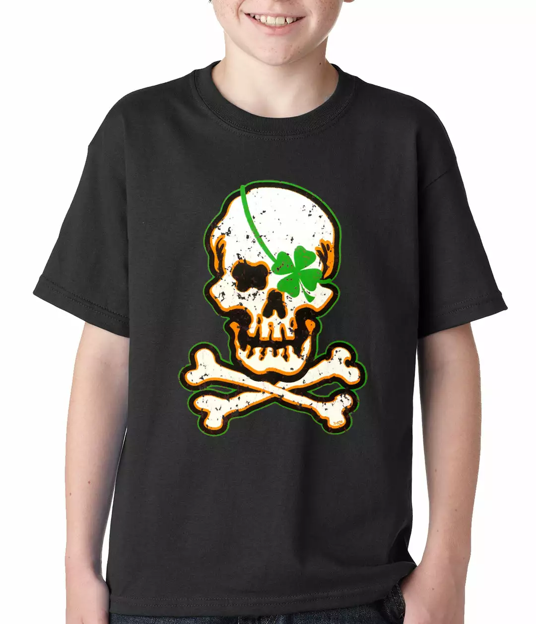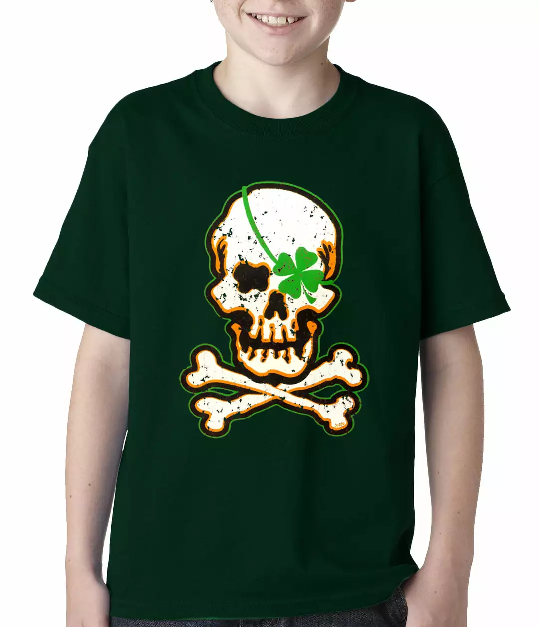 Bewild Irish Shamrock Skull And Crossbones Kids T-shirt