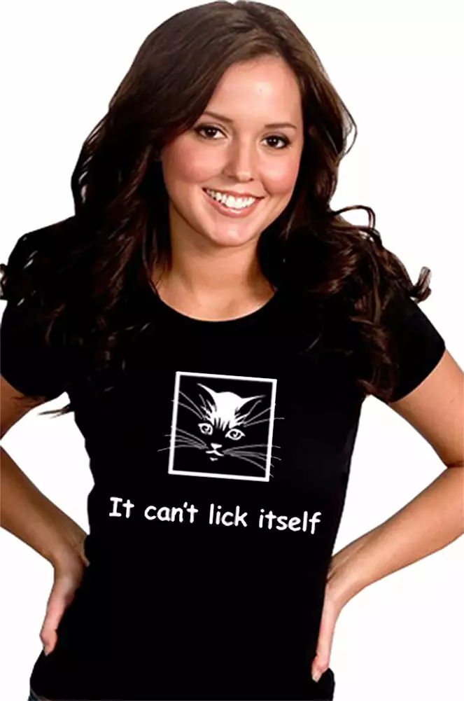 It Can’t Lick Itself Girls T-Shirt. Exclusively from Bewild.com, these new tee’s feature hard-core sayings that say it all. From “Trust Me I’m A Doctor” to “Thats Mr. Asshole To You”. How about a t-shirt that says “I Scored High On My Drug Test” Our short sleeve t-shirts are made from a 100% fully machine washable cotton/poly blend for a cool and comfortable fit every time. On the front of this shirt it says “It Can’t Lick Itself”.