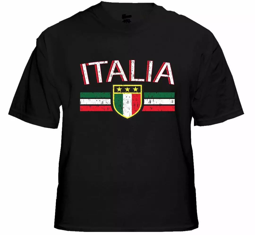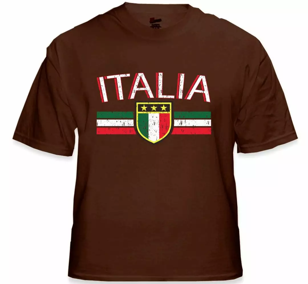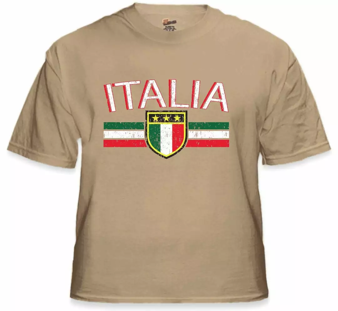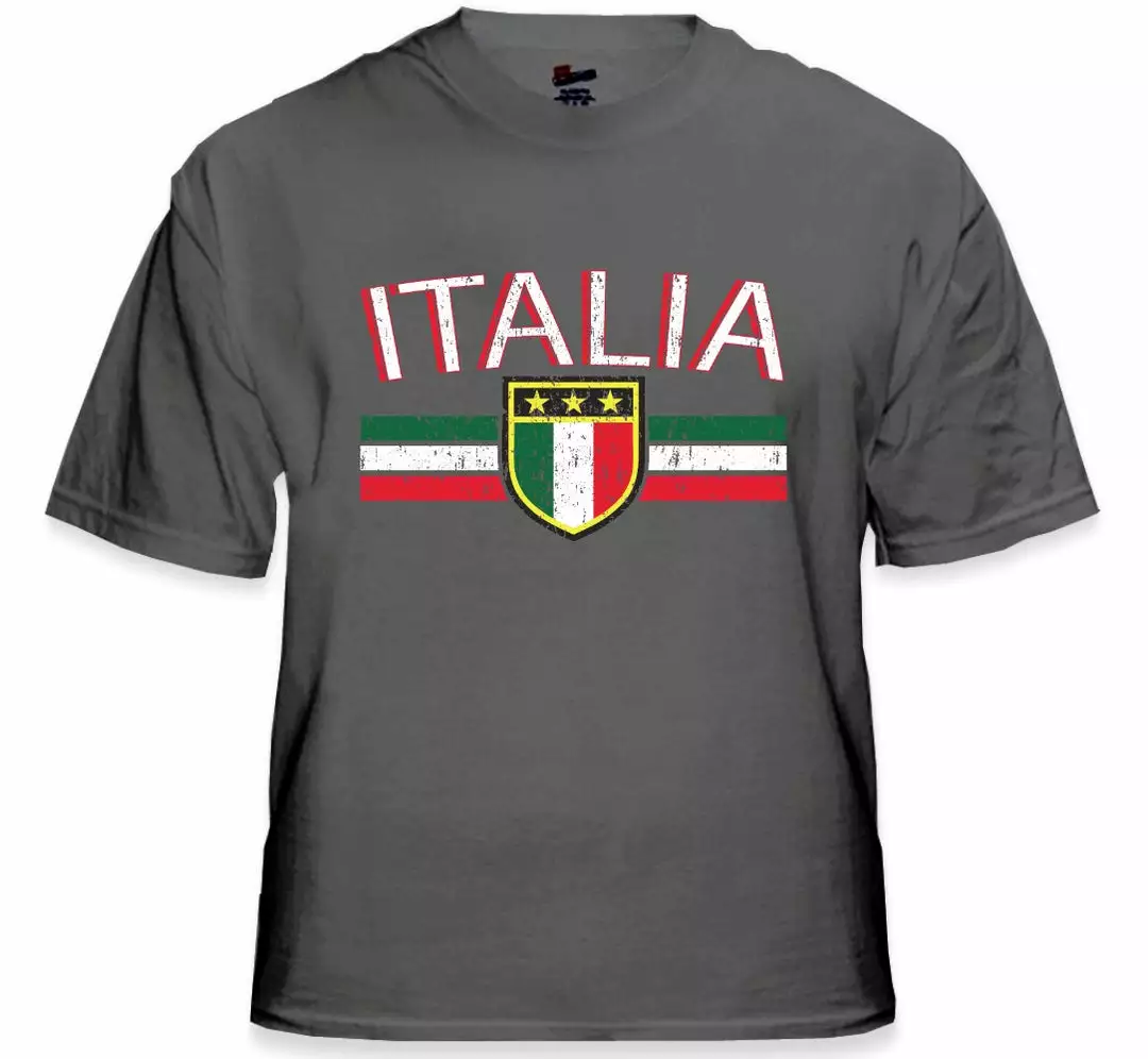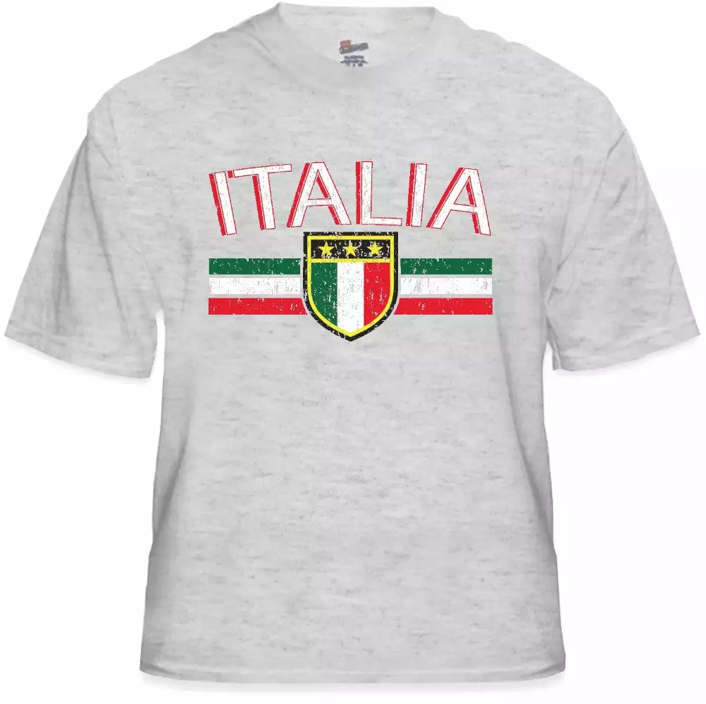 Italia Vintage Shield International Mens T-Shirt. Show pride for your favorite Nation! Our collection of deluxe vintage international print t-shirts are the perfect way to support your home country. Each shirt features premium vintage style designs made to look distressed for that soft “Favorite Old T-shirt” look from day one. These shirts are perfect whether you are rooting for your favorite soccer nation or just showing your love for a special country. Bold athletic style writing spells out each country’s name curved above the country’s national shield; a classic design that is sure to display your patriotism! Each shirt is printed to order on a deluxe Cotton tee shirt in your choice of color.
