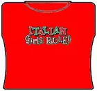 Italian Girls Rule Girls T-Shirt. Exclusively from Bewild.com, these new tee’s feature hard-core sayings that say it all. From “Trust Me I’m A Doctor” to “Thats Mr. Asshole To You”. How about a t-shirt that says “I Scored High On My Drug Test” Our short sleeve t-shirts are made from a 100% fully machine washable cotton/poly blend for a cool and comfortable fit every time. On the front of this shirt it says “Italian Girls Rule”.