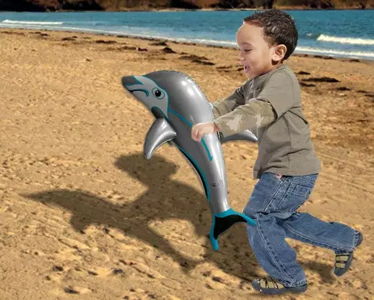36″ Inflatable Dolphin. This Dolphin will be the highlight giveaway at your child’s next birthday party! Each inflatable Dolphin comes complete with a hang tab so you can hang the Dolphin from the ceiling of a nursery, above a crib. Kids love the Dolphin! This Dolphin stands all by itself so it is also great for a decoration that kids will also love to play with. Add a magical touch to goody bags and giveaways at parties. Bring your new inflatable friend to the beach, lake or river for lots of fun or float him in the pool! Each Dolphin measures 36″ from nose to tail.