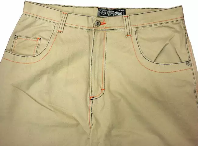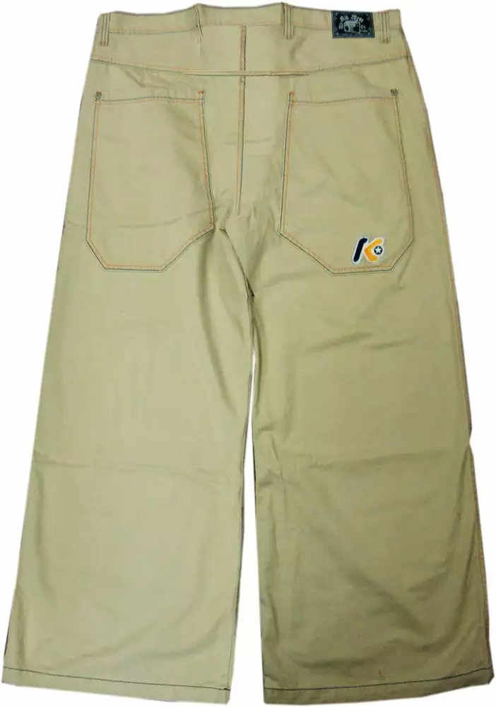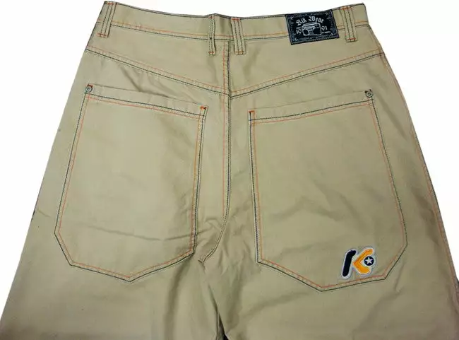 Zip up fly, embroidered K on back right pocket, double contrast stitching