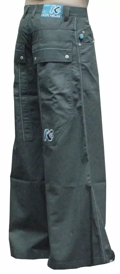 Kikwear Deluxe 42 Inch Bottom Severe Twill Pants (Charcoal). 42 inch Wide Bottom Leg, Twill Pant, Huge Back Pockets, Stash Pocket, Embroidered K on Right Back Pocket, Zip Up Fly. 100% Cotton, Imported. Kik Wear wideleg jeans are 100% machine washable so there’s no running to the cleaners. As with all Kik Wear clothing, a comfortable great fit every time!
