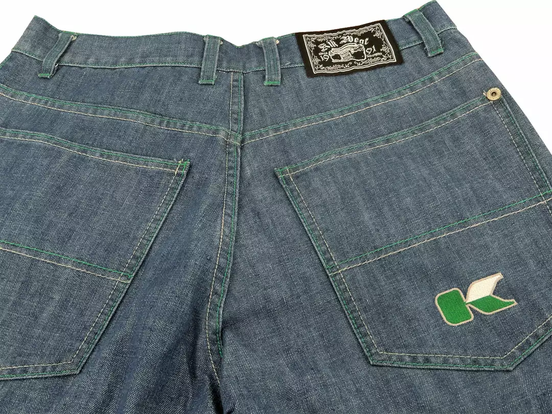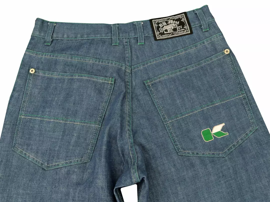 Kikwear Blue Denim Epik Chill Pants, 23″ leg opening. Zip up fly, double stitching, 100% cotton Made in the USA. Kik Wear jeans are 100% machine washable so there’s no running to the cleaners. As with all Kik Wear clothing, a comfortable great fit every time! Kikwear has been known in the skater community for over 20 years as the go to brand for wide leg skater jeans. Kikwear offers you these authentic 1990’s style skate pants, a style of pants that even today is in high demand but all other clothing brands have abandoned as a trend of that past. Kikwear is now the only standing brand of these comfortable baggy jeans and in true Kikwear jeans style have proved these jeans are not a thing of the past but a staple fashion statement in the streetwear community.