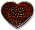 Jesus Loves Me Heart Lapel Pin. Hand crafted lapel pins are ideal for promoting any special event or something special to you.The pins are individually hand painted,polished and then plated. Find a lapel pin that is guaranteed to meet your needs. Enjoy our pins everyday. Wear them on your jackets, hats, bookbags, Neckties and much, much more!