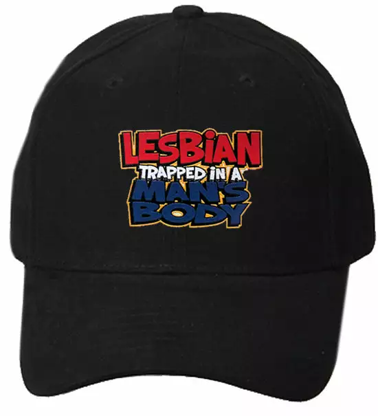 Lesbian Trapped In A Man’s Body Baseball Caps now available. Get Lesbian Trapped In A Man’s Body Baseball Hat featuring 100% cotton 5 panel construction, a pre-curved bill, triple stitched sweatband and adjustable Velcro closure.