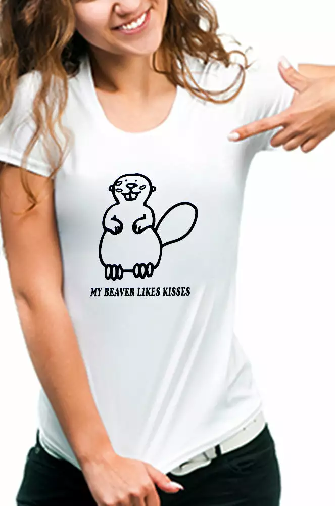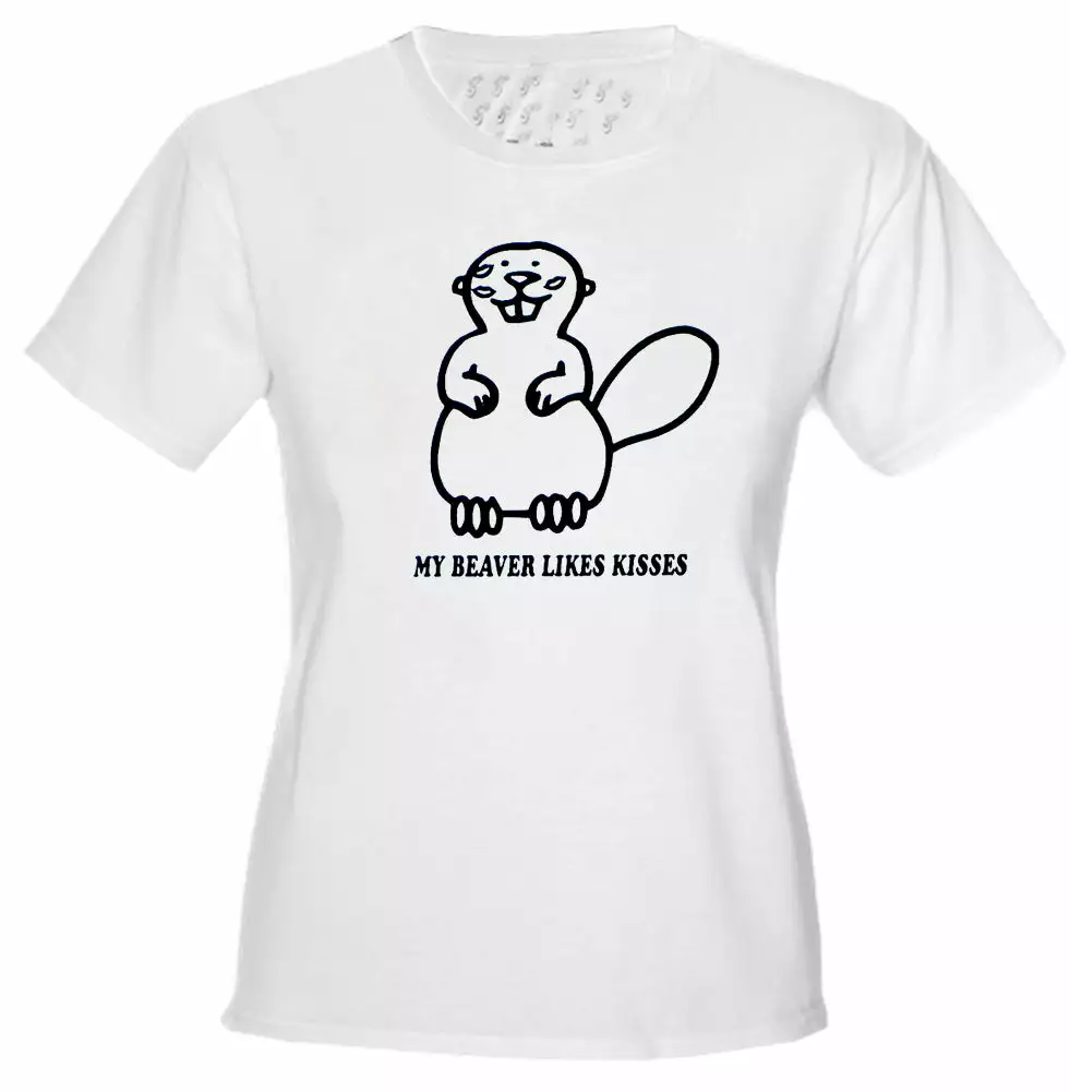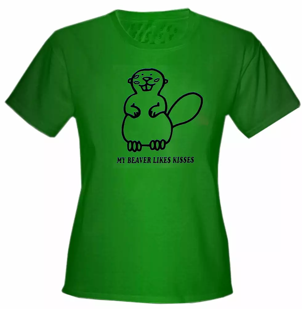 My Beaver Likes Kisses Girls T-Shirt. Exclusively from Bewild.com, these new tee’s feature hard-core sayings that say it all. From “Lick Here For Full View” to “Skanky white-trailer trash”. How about a t-shirt that says “Dip me in Chocolate and throw me to the lesbians?” Our short sleeve “My Beaver Likes Kisses” t-shirts are made from a 100% fully machine washable preshrunk cotton for a cool and comfortable fit every time.