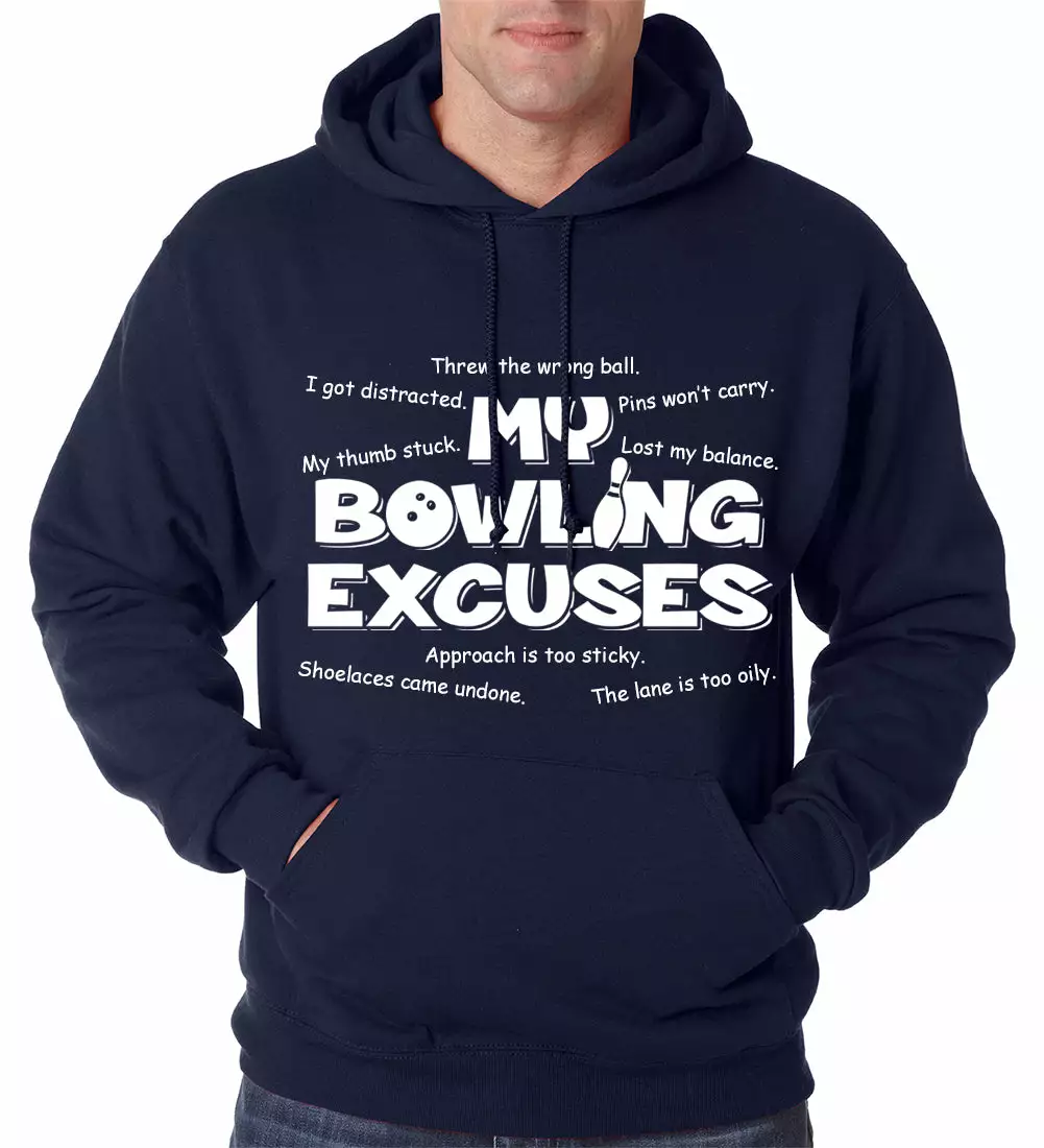 This amazing Bowling shirt is just what you need. 9 ready to go, completely beliveable excuses. We thought about putting a 10th excuse on here, one for every frame, but if you need all 9, you probably shouldn’t be playing this game anyway.