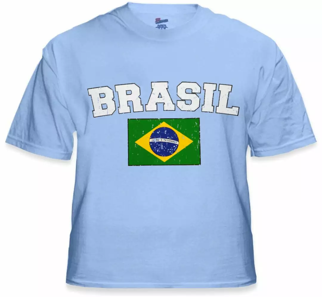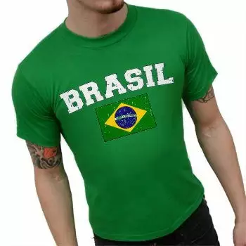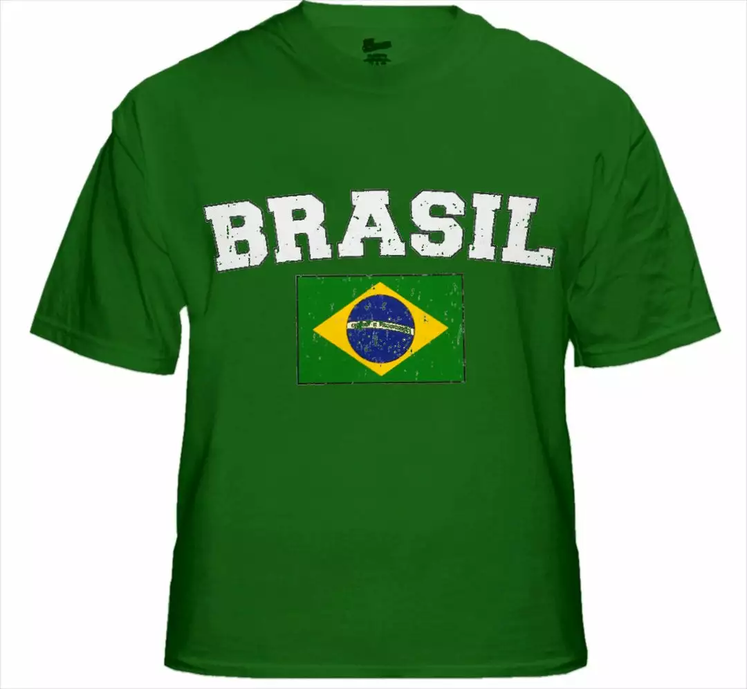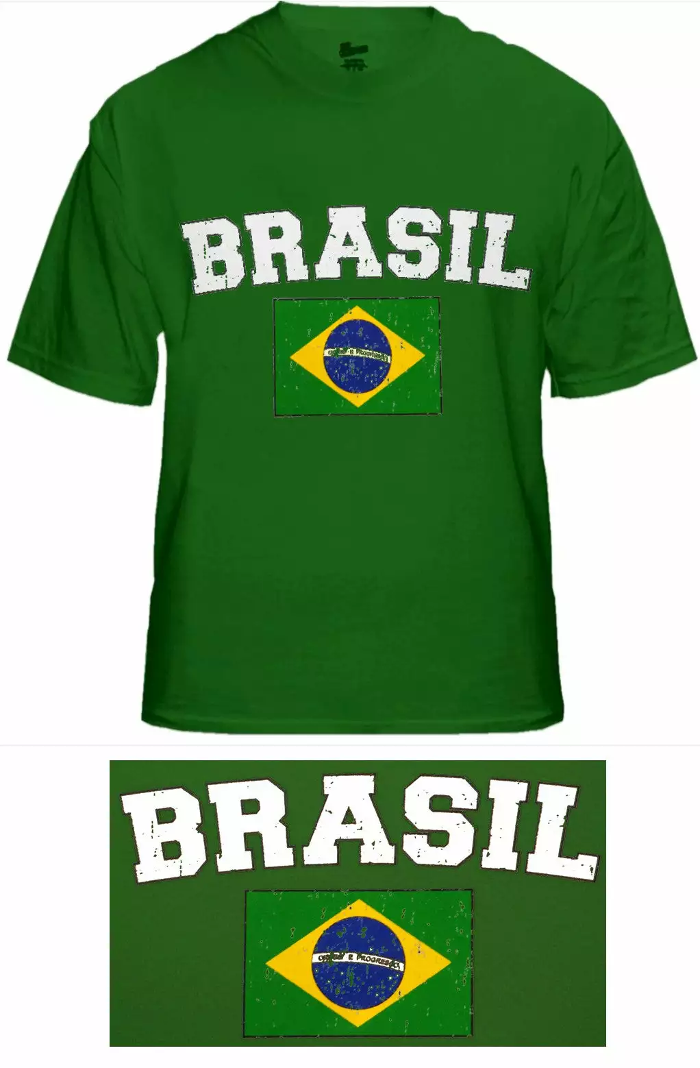 Brasil Vintage Flag International Mens T-Shirt. Show pride for your favorite Nation! Our collection of deluxe vintage international print t-shirts are the perfect way to support your home country. Each shirt features premium vintage style designs made to look distressed for that soft “Favorite Old T-shirt” look from day one. These shirts are perfect whether you are rooting for your favorite soccer nation or just showing your love for a special country. Bold athletic style writing spells out each country’s name curved above the country’s national shield; a classic design that is sure to display your patriotism! Each shirt is printed to order on a deluxe Cotton tee shirt in your choice of color.