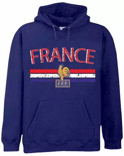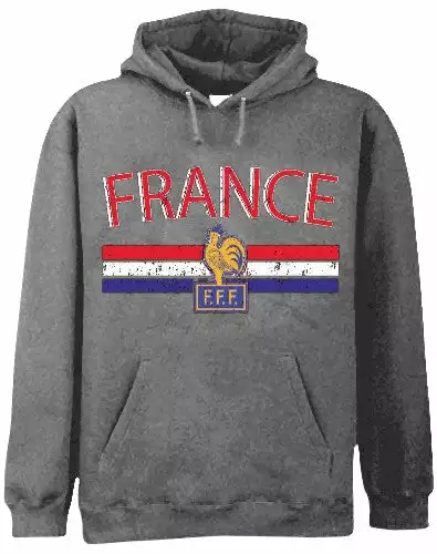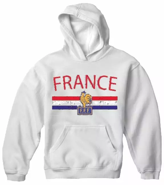 France Vintage Shield International Hoodie. Show pride for your favorite Nation! Our collection of deluxe vintage international print Hoodies are the perfect way to support your home country. Each shirt features premium vintage style designs made to look distressed for that soft “Favorite Old Sweatshirt” look from day one. These shirts are perfect whether you are rooting for your favorite soccer nation or just showing your love for a special country. Bold athletic style writing spells out each country’s name curved above the country’s national shield; a classic design that is sure to display your patriotism! Each shirt is printed to order on a deluxe hooded sweatshirt in your choice of color.