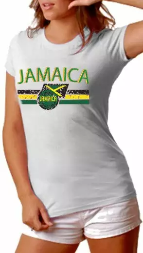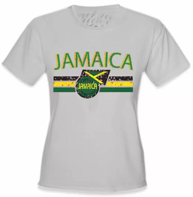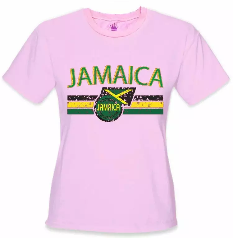 Jamaica Vintage Shield International Girls T-Shirt. Show pride for your favorite Nation! Our collection of deluxe vintage international print t-shirts are the perfect way to support your home country. Each shirt features premium vintage style designs made to look distressed for that soft “Favorite Old T-shirt” look from day one. These shirts are perfect whether you are rooting for your favorite soccer nation or just showing your love for a special country. Bold athletic style writing spells out each country’s name curved above the country’s national shield; a classic design that is sure to display your patriotism! Each shirt is printed to order on a deluxe Cotton tee shirt in your choice of color.