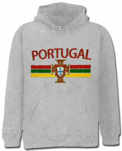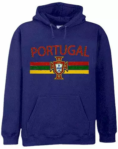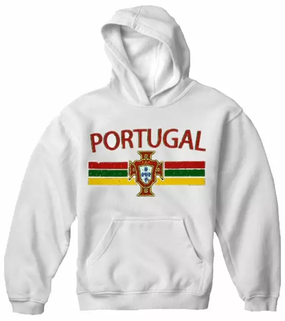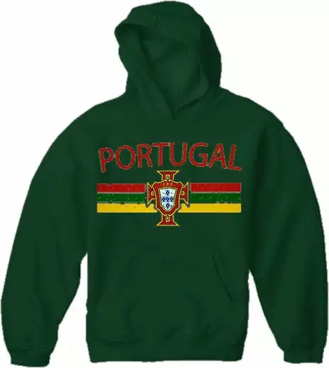Portugal Vintage Shield International Hoodie. Show pride for your favorite Nation! Our collection of deluxe vintage international print Hoodies are the perfect way to support your home country. Each shirt features premium vintage style designs made to look distressed for that soft “Favorite Old Sweatshirt” look from day one. These shirts are perfect whether you are rooting for your favorite soccer nation or just showing your love for a special country. Bold athletic style writing spells out each country’s name curved above the country’s national shield; a classic design that is sure to display your patriotism! Each shirt is printed to order on a deluxe hooded sweatshirt in your choice of color.