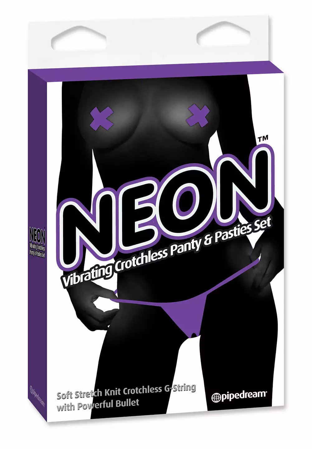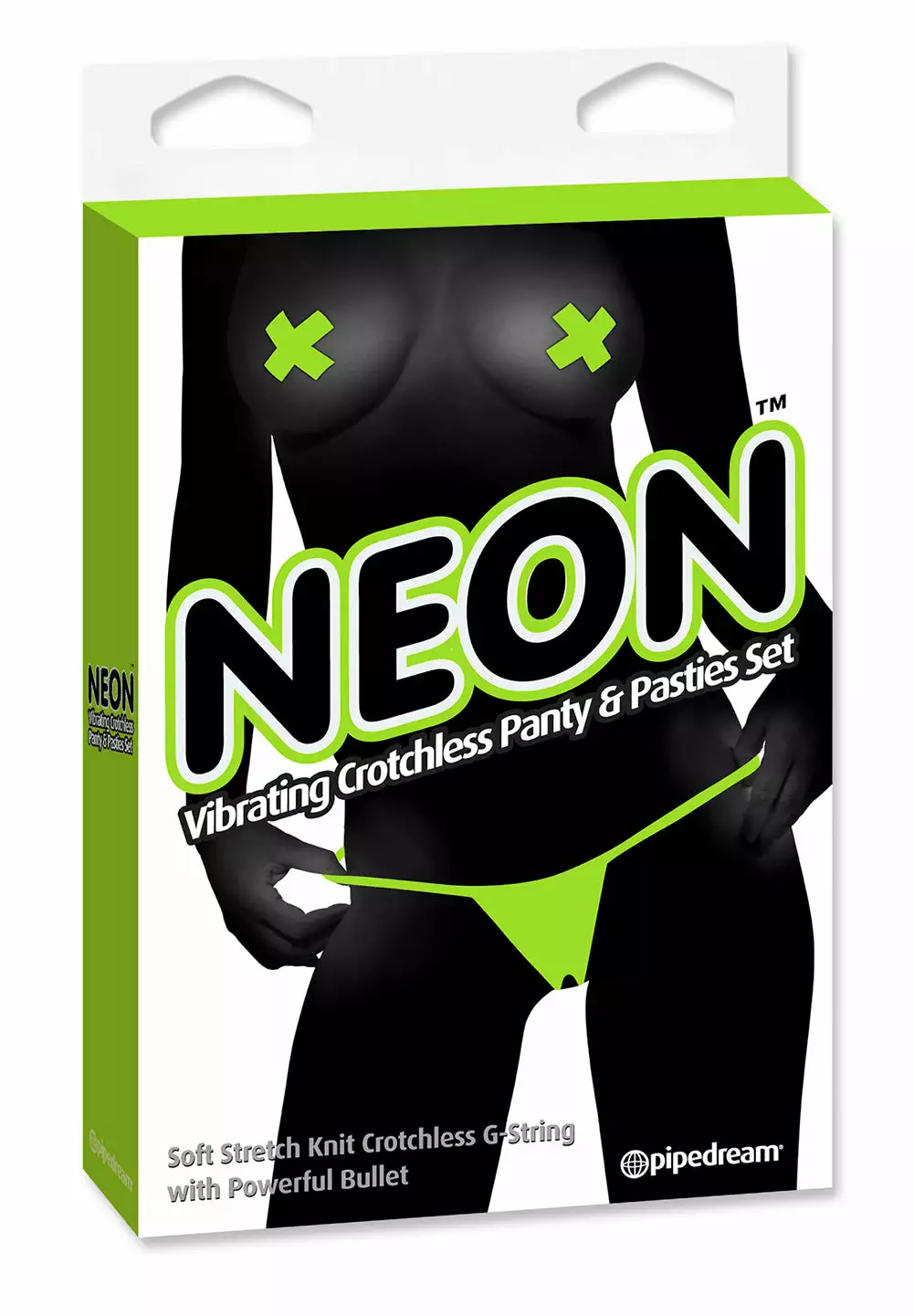The Neon Vibrating Crotchless Panties don’t just look great, these are the funnest pair of panties you’ll ever wear! Tucked away discreetly inside this soft-stretch crotchless G-String is a hidden micro bullet designed to rock your world! The crotchless opening allows you to have sex with your panties on while the whisper-quiet motor in the powerful micro bullet provides incredible stimulation where you want it most. Try them in the shower or spa and turn bath time into pleasure time!