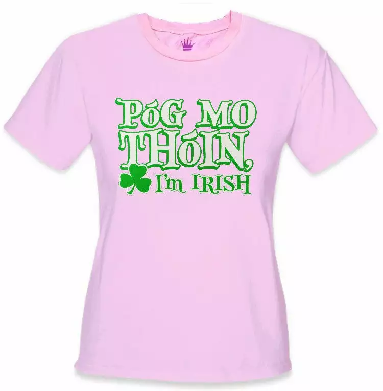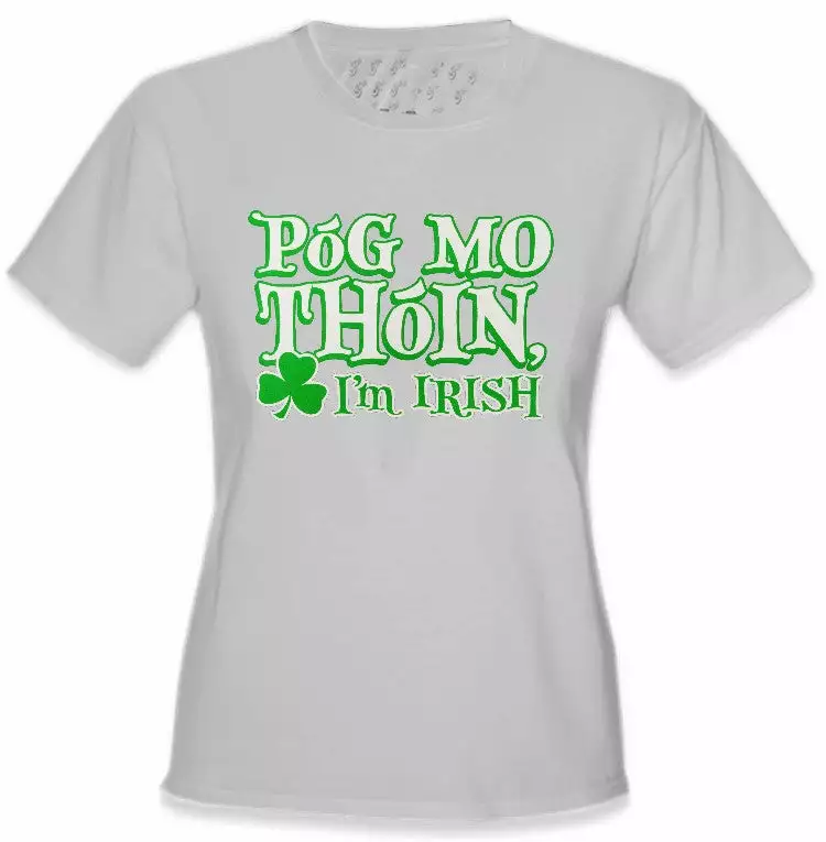 Póg Mo Thóin! “Kiss My Ass” I’m Irish Girls T-Shirt. Póg Mo Thóin a famous Irish Gaelic saying meaning to kis my ass! This funny irish t-shirt is perfect for st.patrick’s day or any proud Irishman or Irishwomen!