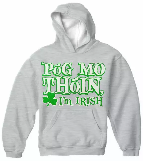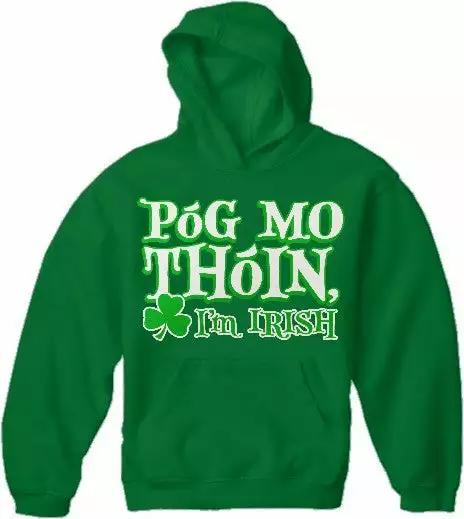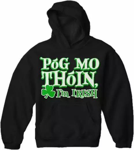 Póg Mo Thóin! “Kiss My Ass” I’m Irish Hoodie. Póg Mo Thóin a famous Irish Gaelic saying meaning to kiss my ass! This funny irish hoodie is perfect for st.patrick’s day or any proud Irishman or Irishwomen!