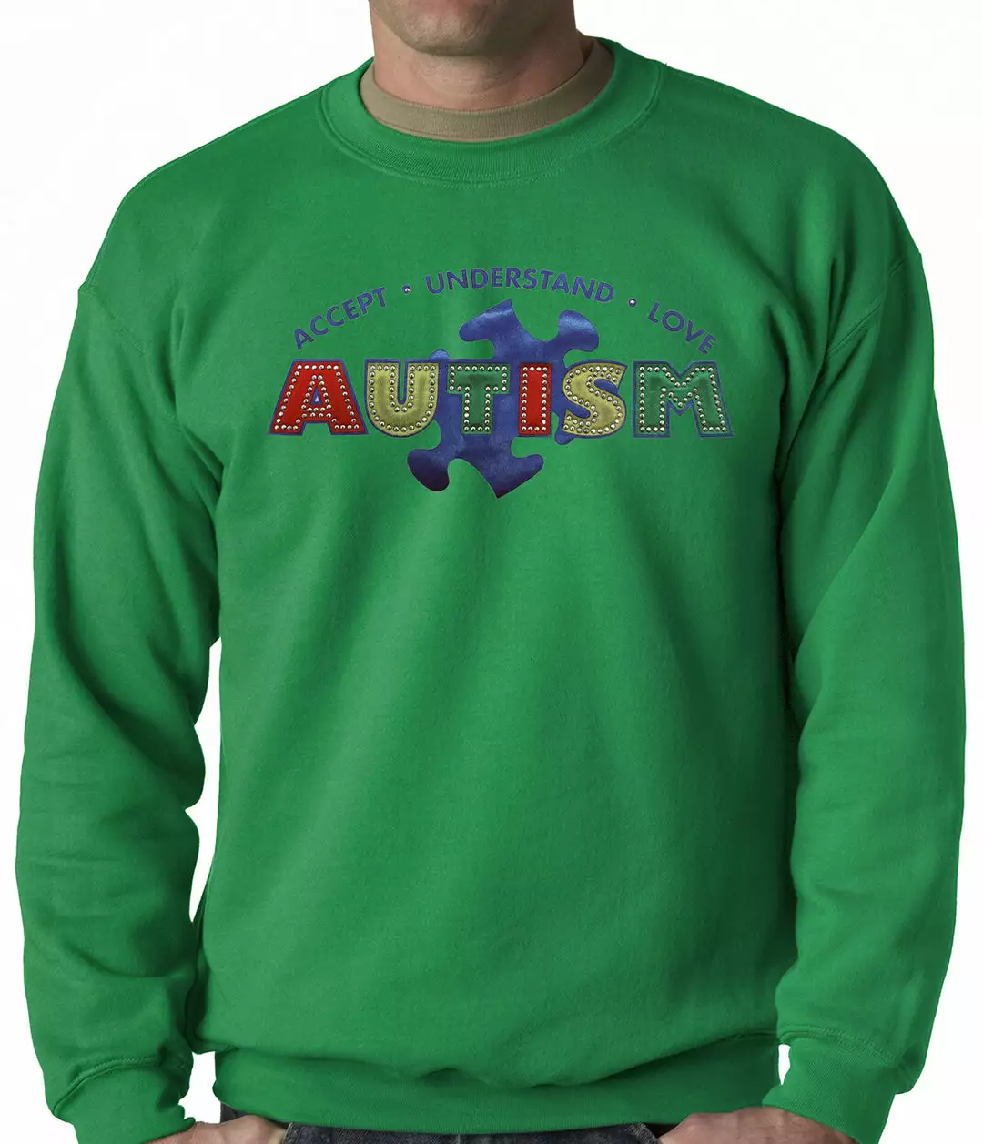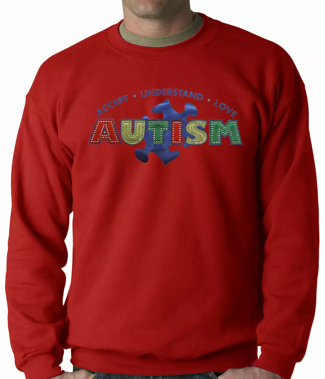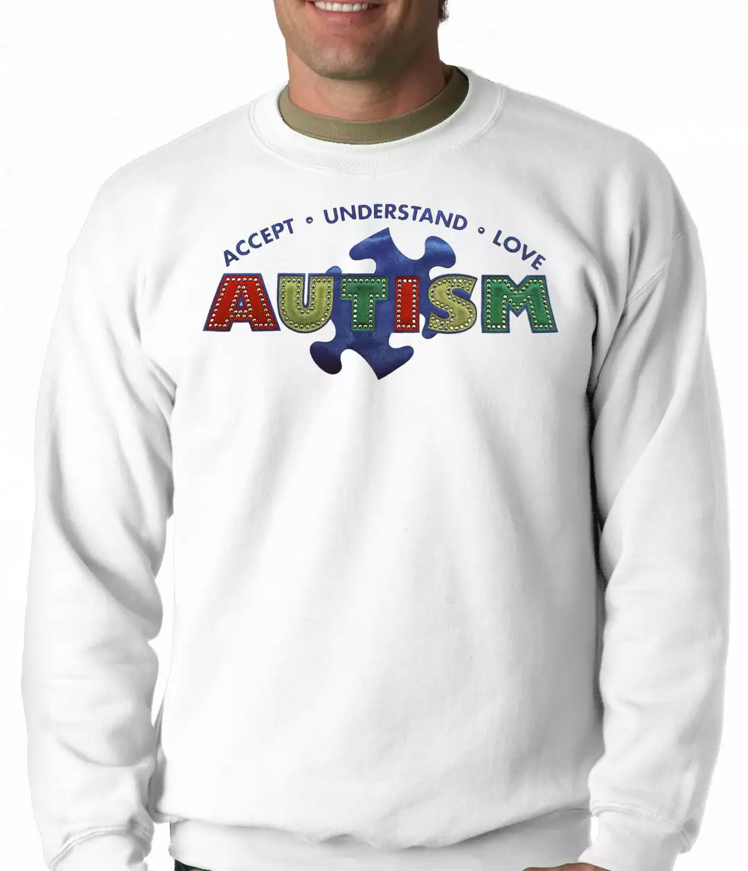 Bewild Positive Reinforcement Autism Awareness – Accept, Understand, Love Adult Crewneck