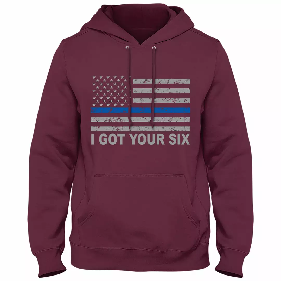 Bewild Positive Reinforcement Blue Line American Flag – I Got Your Six – Blue Lives Matter Adult Hoodie