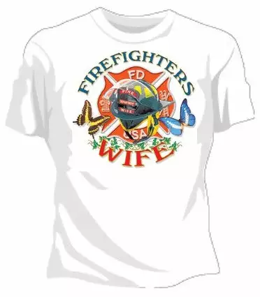 Firefighters Wife Girls T-Shirt. Exclusively from Bewild.com, these new tee’s feature hard-core sayings that say it all. From “Trust Me I’m A Doctor” to “Thats Mr. Asshole To You”. How about a t-shirt that says “I Scored High On My Drug Test” Our short sleeve t-shirts are made from a 100% fully machine washable cotton/poly blend for a cool and comfortable fit every time. On the front of this shirt it says “Firefighters Wife!”