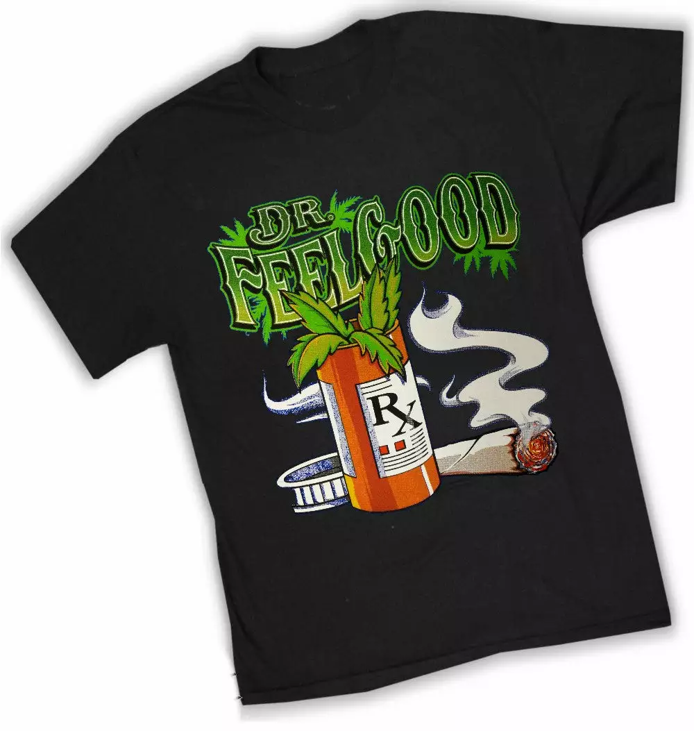 Pot Head & Stoner Tees – Dr.Feelgood T-Shirt. We have the largest selection of pot head and stoner t-shirts on the web so you can indulge in your “green” lifestyle! Each shirt is designed to show your love for herb. All of our pot head and stoner tees are printed on deluxe 100% cotton t-shirts in your choice of color. Makes a great gift for the smoker in your life! Don’t wait until 4:20 to pick yours up… These shirts are awesome year round.