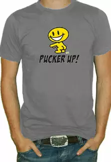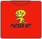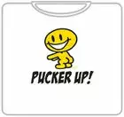 Pucker Up T-Shirt. Exclusively from Bewild.com, these new tee’s feature hard-core sayings that say it all. From “Trust Me I’m A Doctor” to “Thats Mr. Asshole To You”. How about a t-shirt that says “I Scored High On My Drug Test” Our short sleeve t-shirts are made from a 100% fully machine washable cotton/poly blend for a cool and comfortable fit every time. On the front of this shirt it says “Pucker Up.”