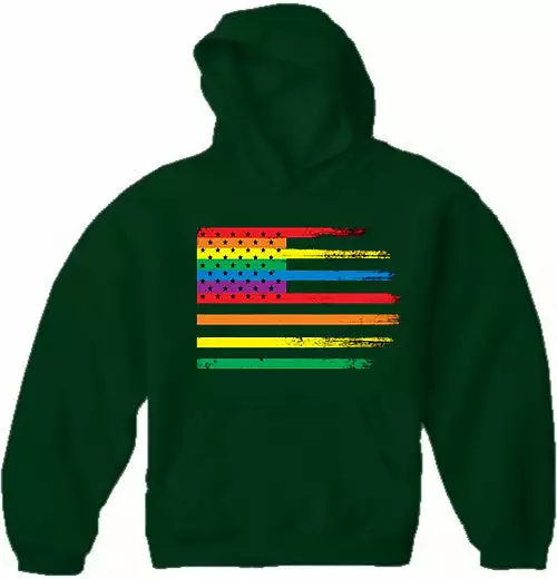 Rainbow Pride American Vintage Flag Hoodie. A sporty hooded pullover that will always look smooth, thanks to our pill-resistant fleece.