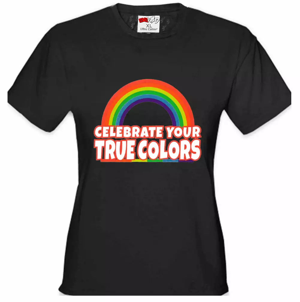 Rainbow Pride Junior Fitted shirts are a S-32″ at bust and 29″ at waist, M-34″ at bust and 30″ at waist , L36″ at bust and 34″ at waist, XL-38″ at bust and 35″ at waist.