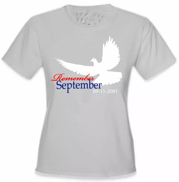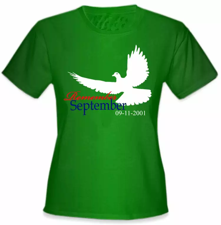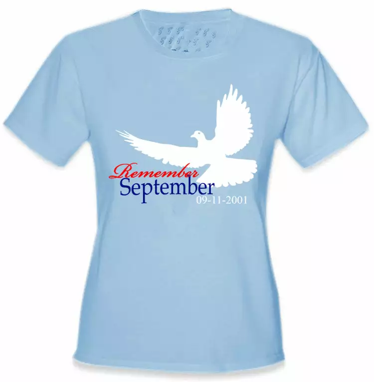 Remember September 9/11 Girl’s Tee. Show your support for the US with this Remember September 9/11 t-shirt! Featuring a beautiful bird and it says “Remember September” in red and navy blue. 9/11 was a devastating blow to the US and it should never be forgotten. All the amazing people that helped the cause and died for our country will never be forgotten!Â