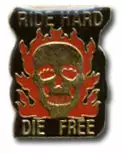 Ride Hard Die Free Lapel Pin. Hand crafted lapel pins are ideal for promoting any special event or something special to you.The pins are individually hand painted,polished and then plated. Find a lapel pin that is guaranteed to meet your needs. Enjoy our pins everyday. Wear them on your jackets, hats, bookbags, Neckties and much, much more!