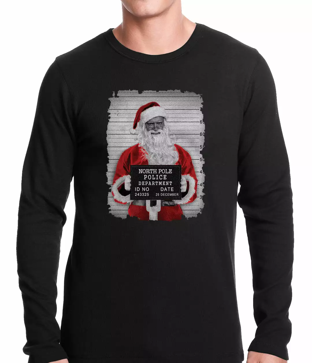 Bewild Santa Mug Shot Funny Thermal Shirt